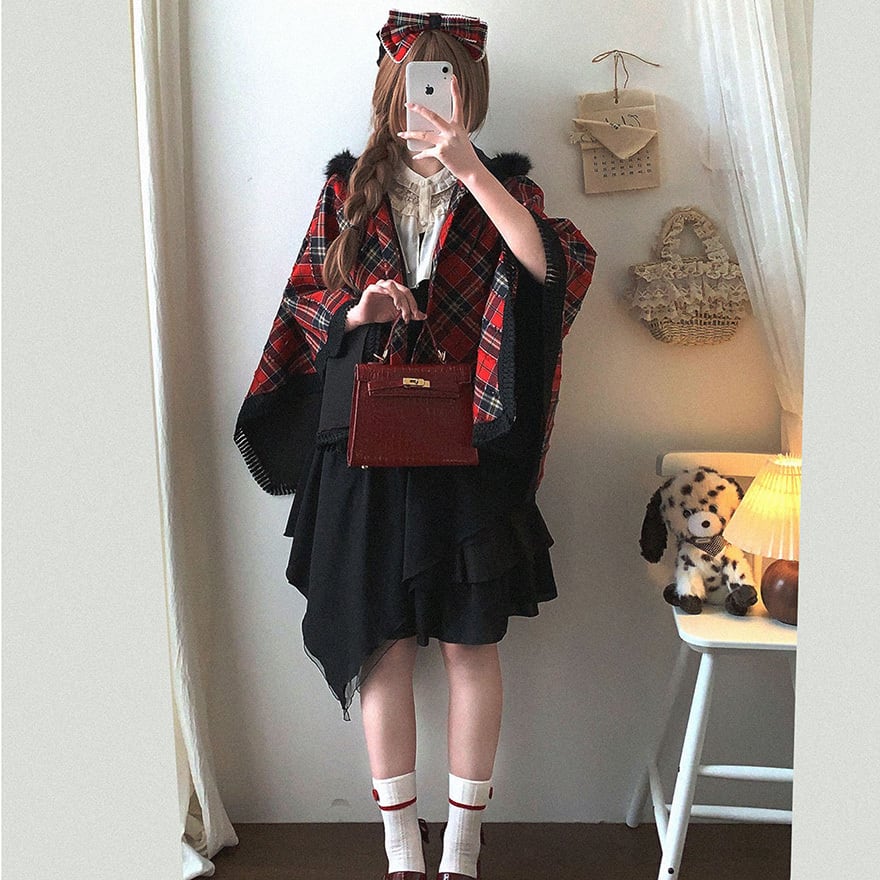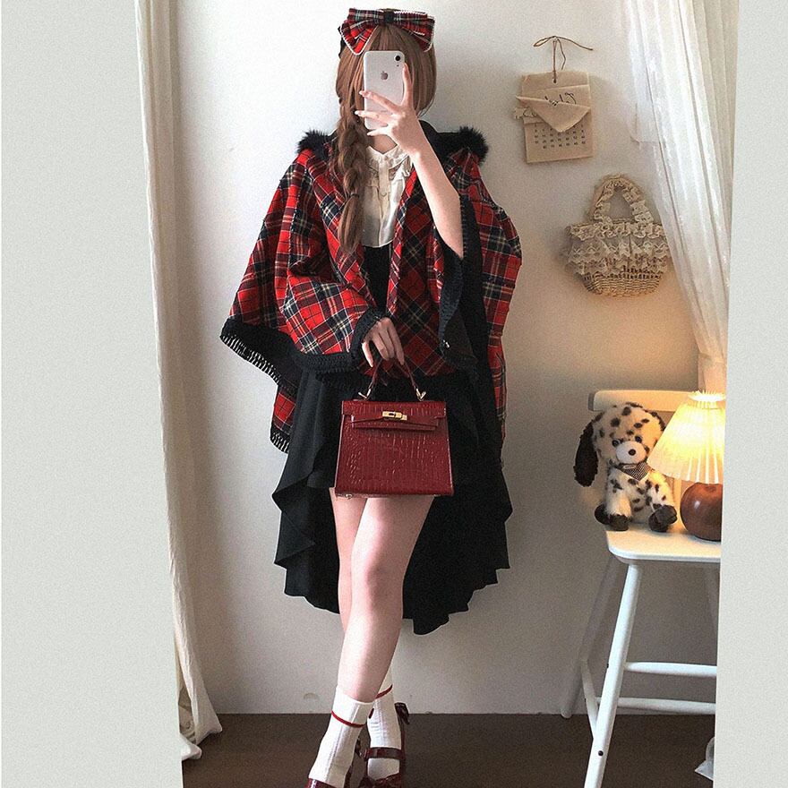 関連キーワード: #セミロリ #ポンチョ #ケープ #チェック柄 #赤ずきん #森ガール #フード付き #フリンジ #秋冬コーデ #アウター #可愛い
