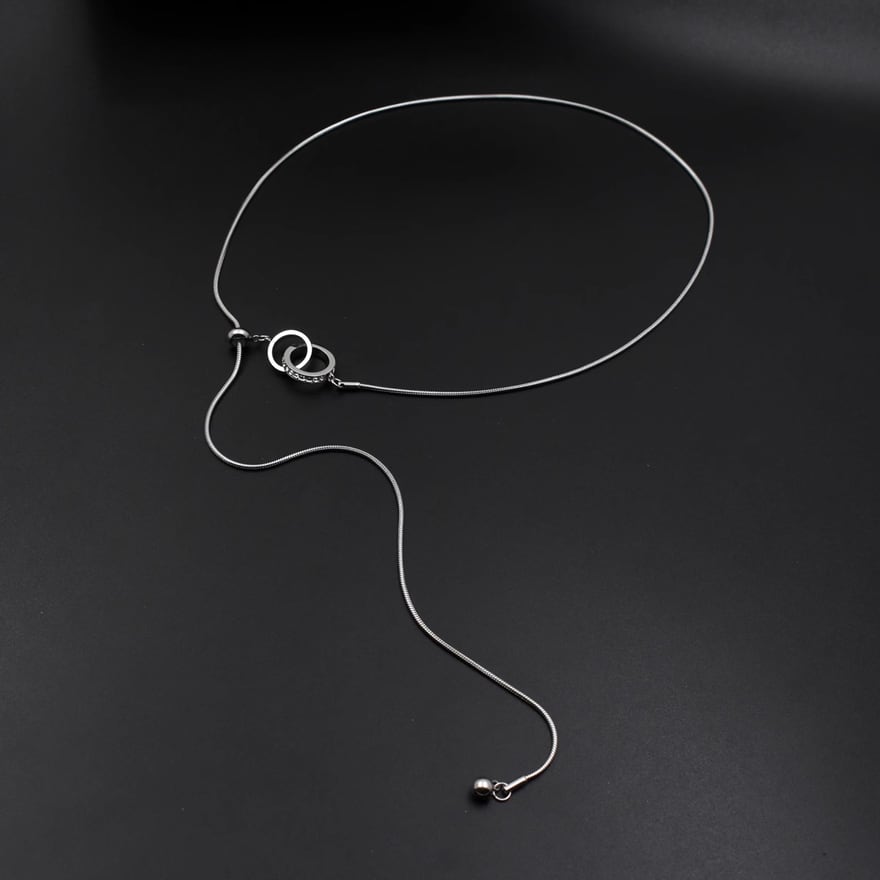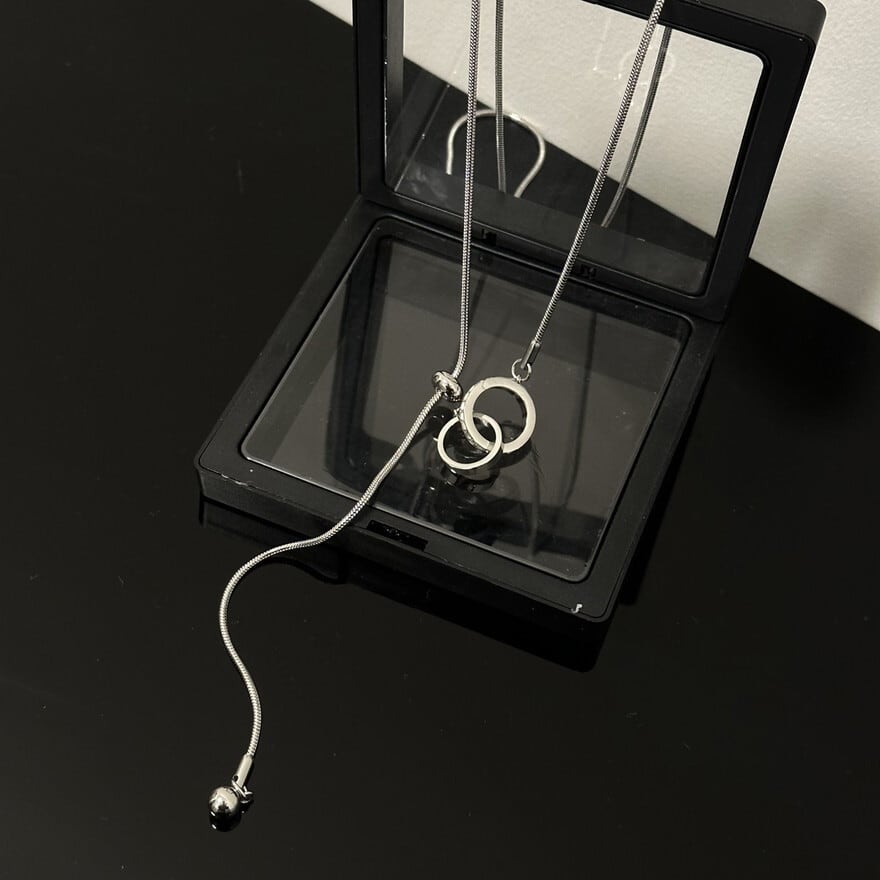 → リングモチーフとY字シルエットにより、縦ラインが強調され、首元に自然なアクセントを加えます。