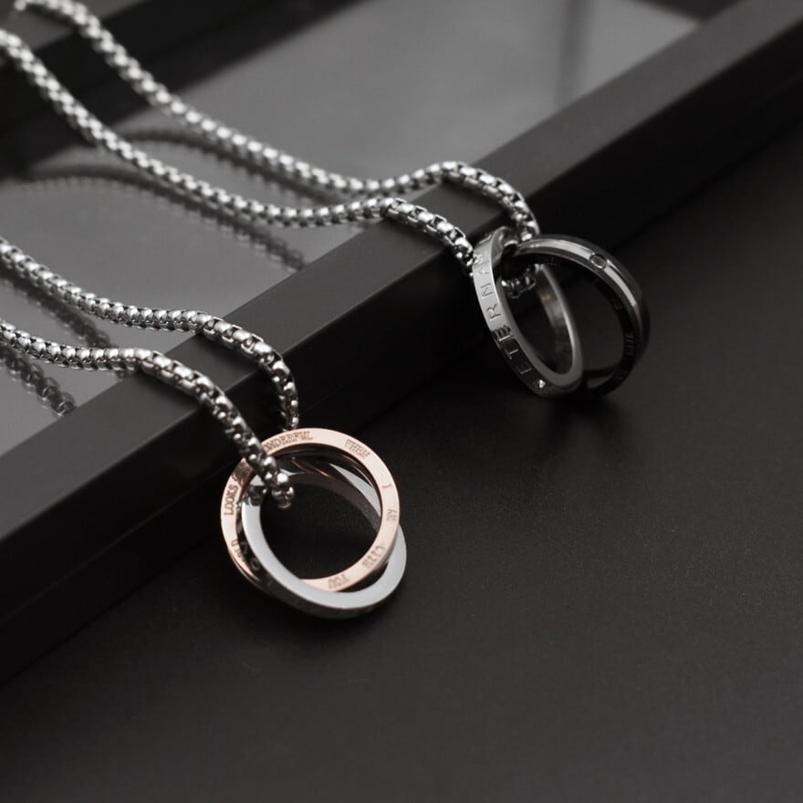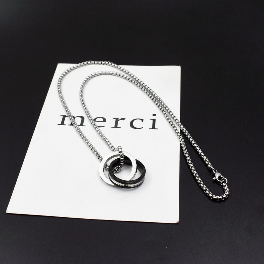 推し活や日常コーデに取り入れやすい、ゴシック系の世界観を持つダブルリングモチーフのネックレスです。