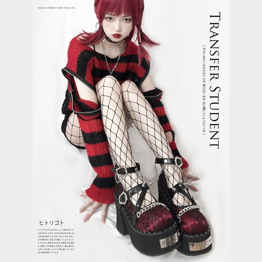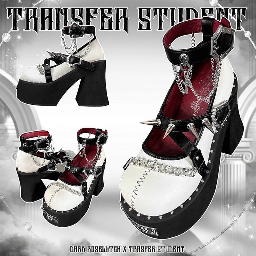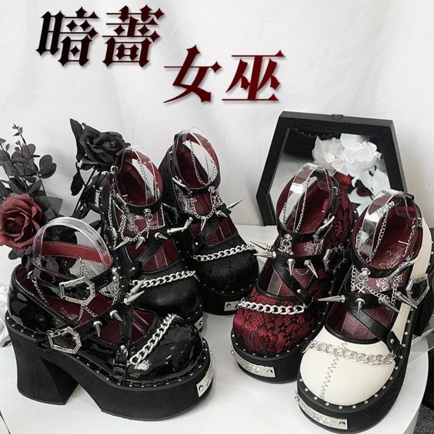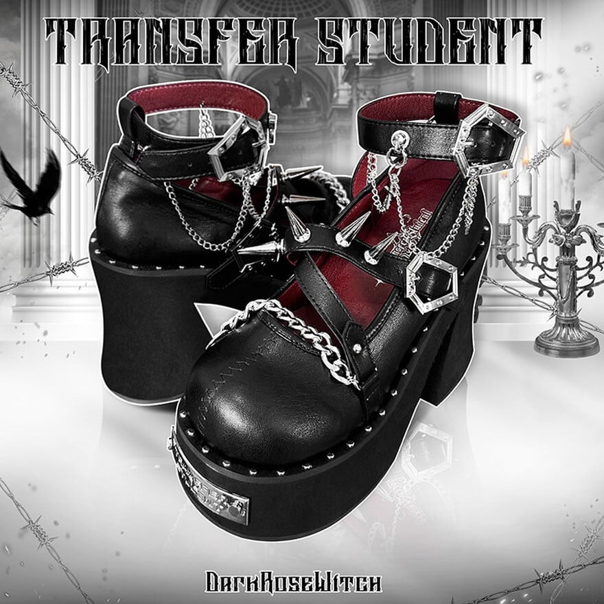 本商品は金属装飾と厚底シルエットを前面に出した地雷系・ゴシック特化シューズという立ち位置。