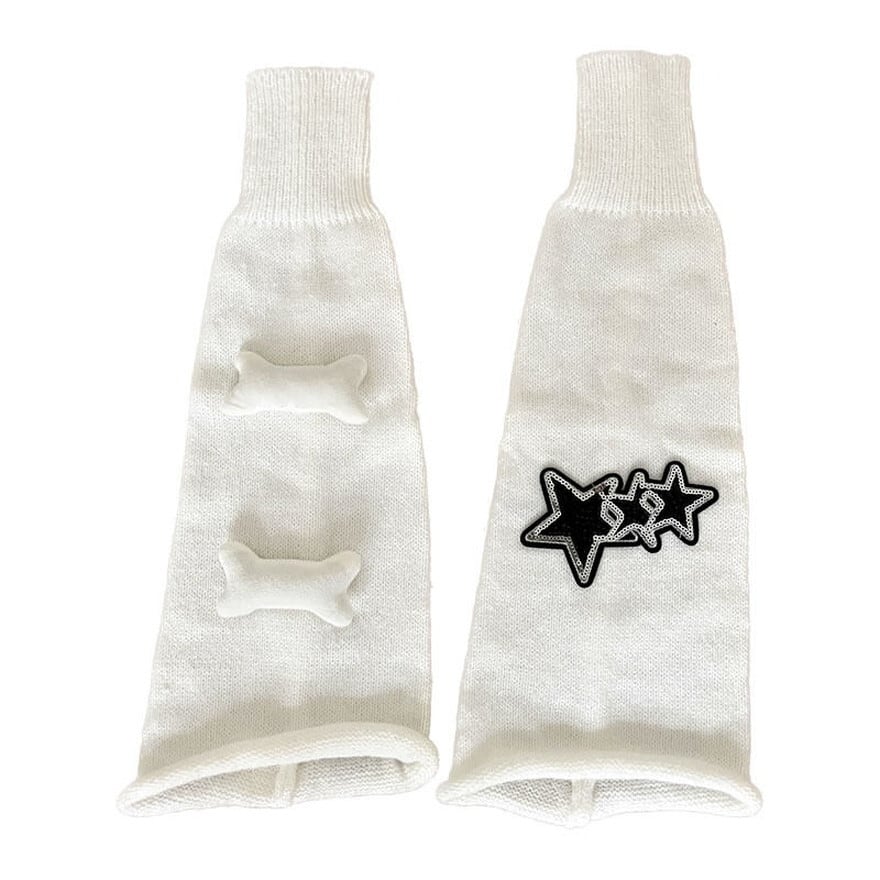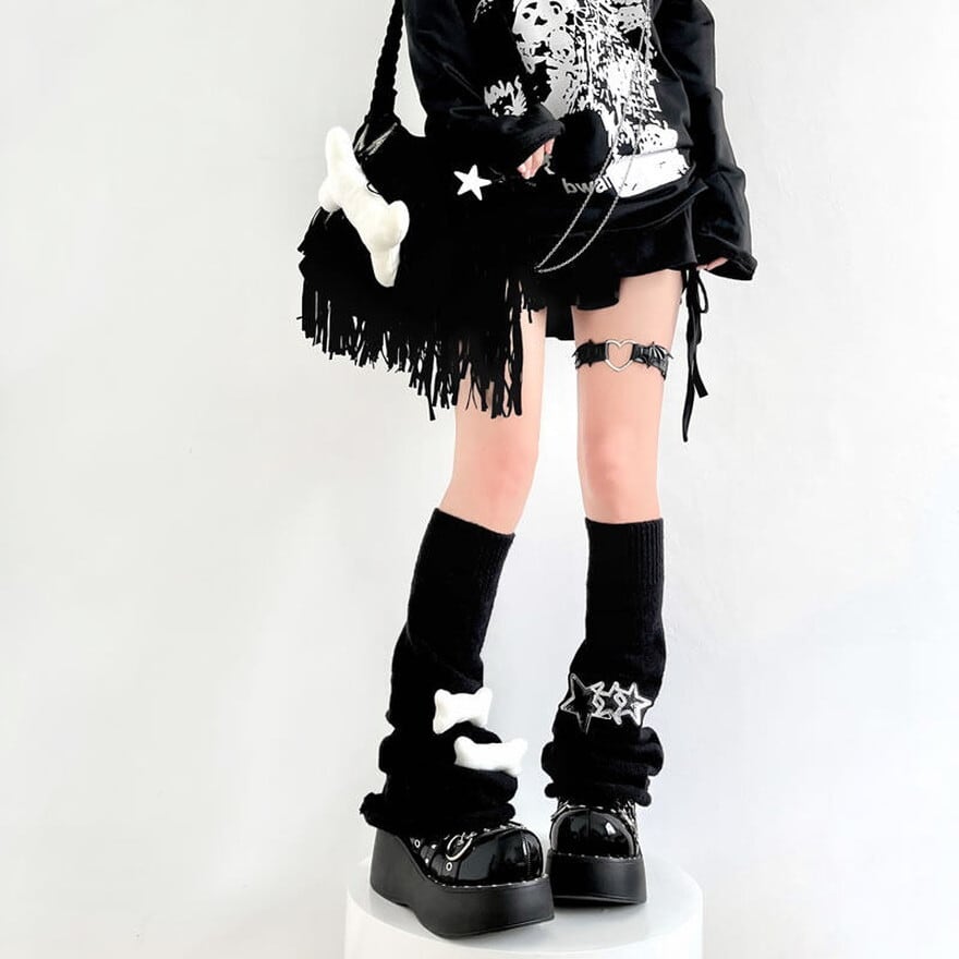地雷系・サブカル系ファッションを好む方が、日常コーデやライブ参戦で使いやすいスター&リボン装飾付きのレッグカバーです。