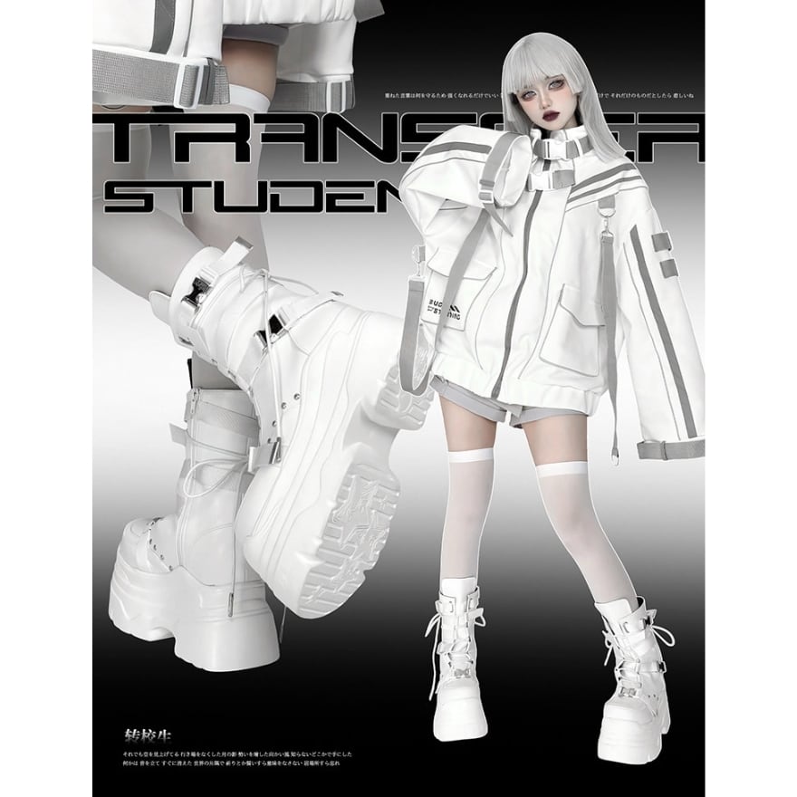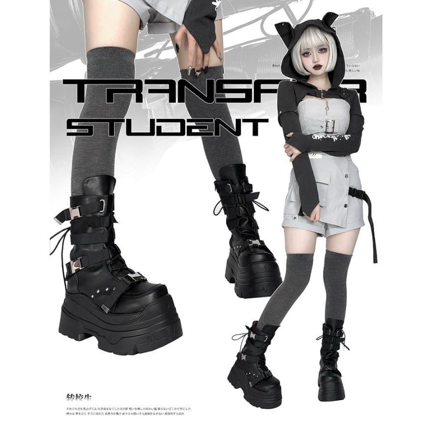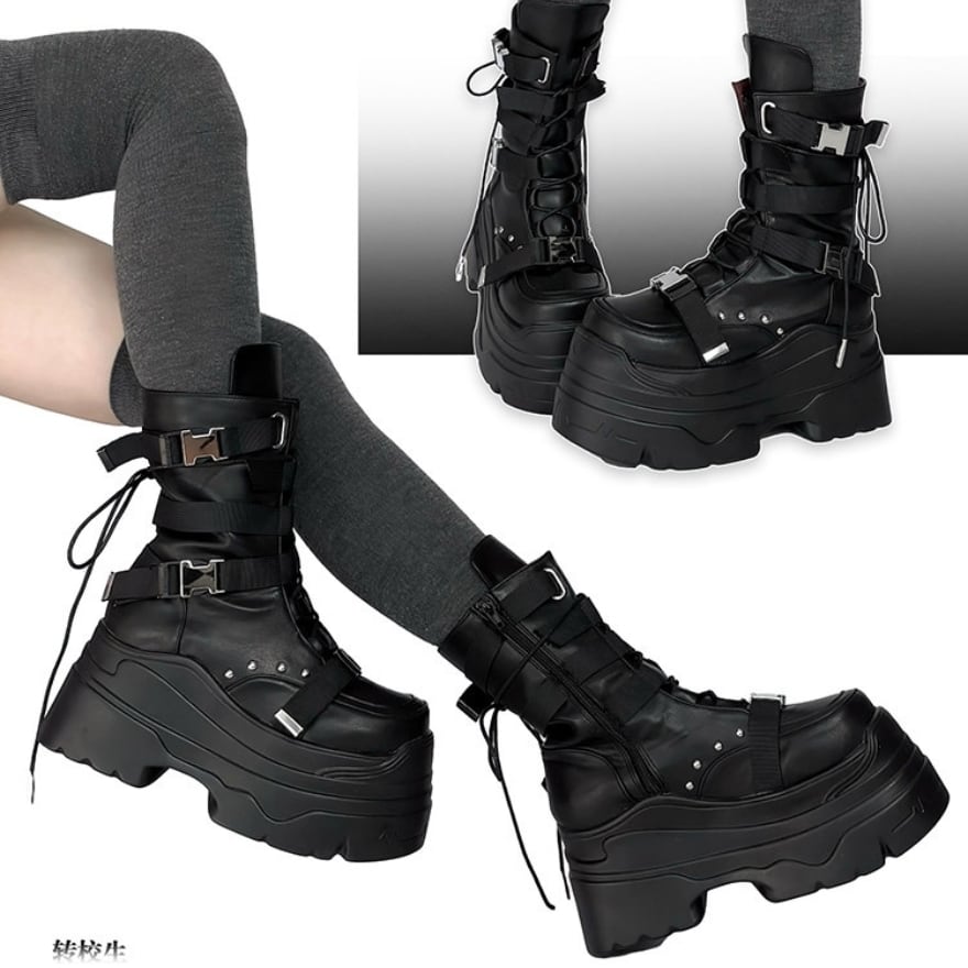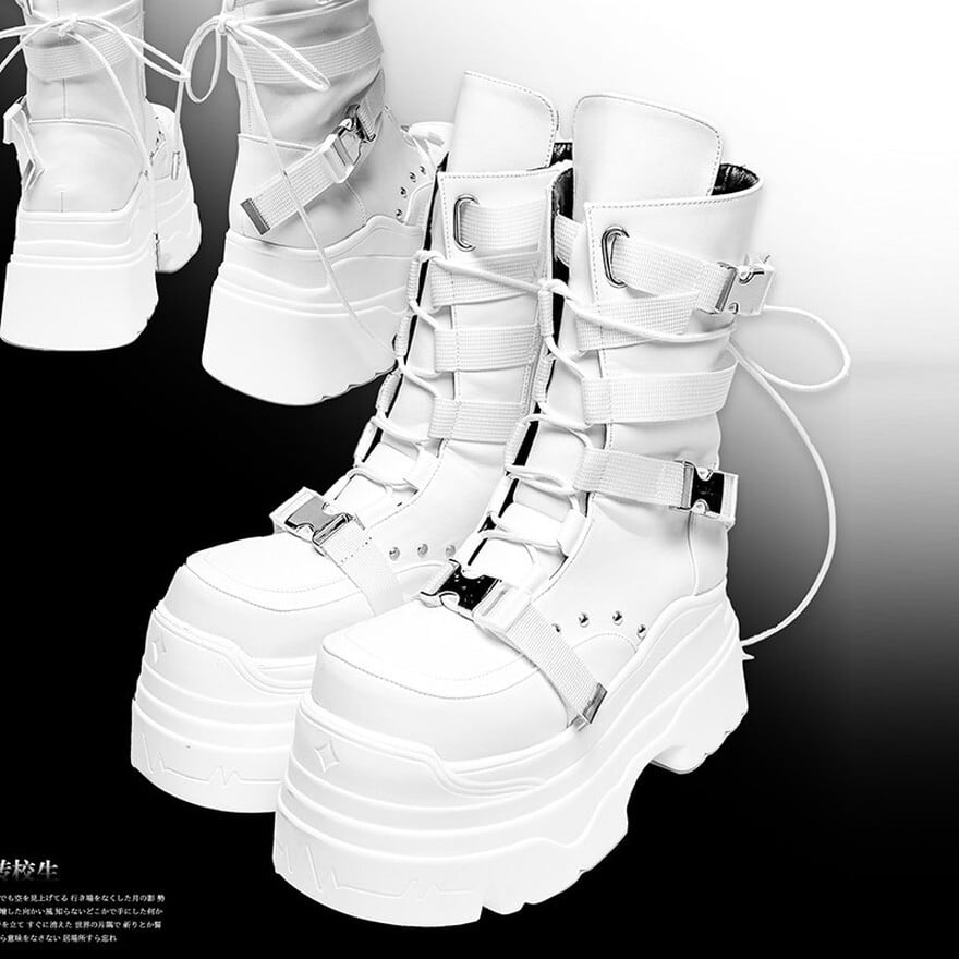 地雷系・ゴシック系サブカルファッションを好む方が、ライブ参戦やイベント、日常コーデで重厚感のある足元を演出できるハイカット厚底ブーツです。