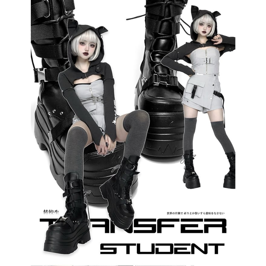 足元を主役にした、地雷系・ゴシック寄りコーデ向けブーツです。