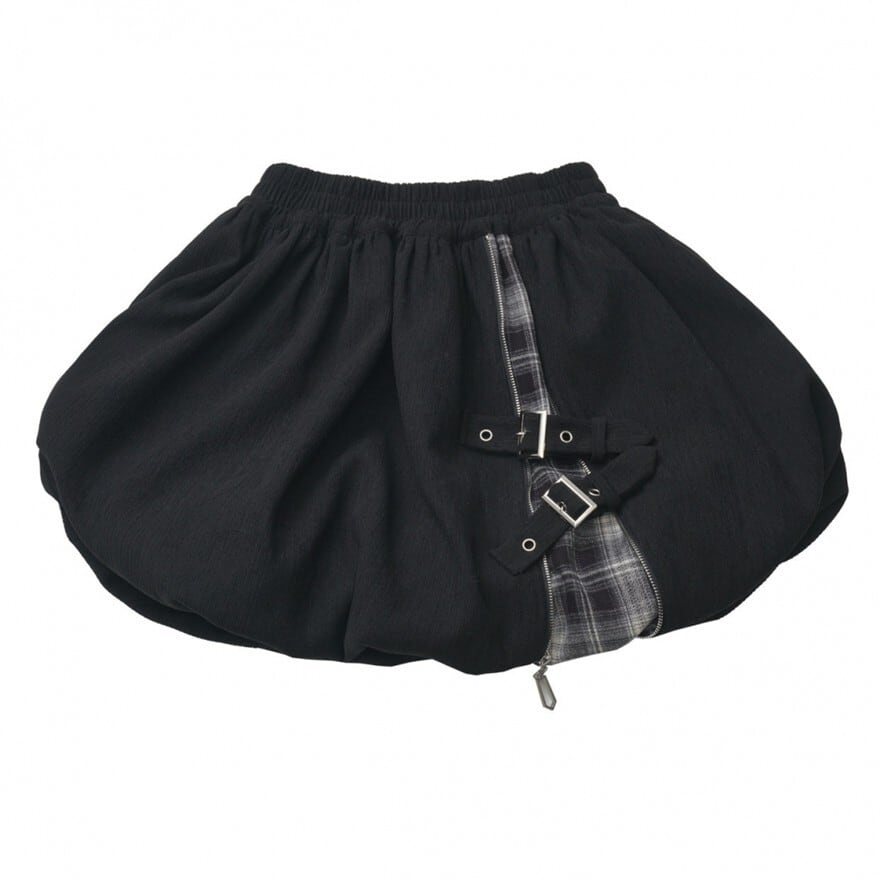 シックなブラックにチェック柄のディテールが映えるミニスカートは、ロリータファッションにモードな要素をプラスします。