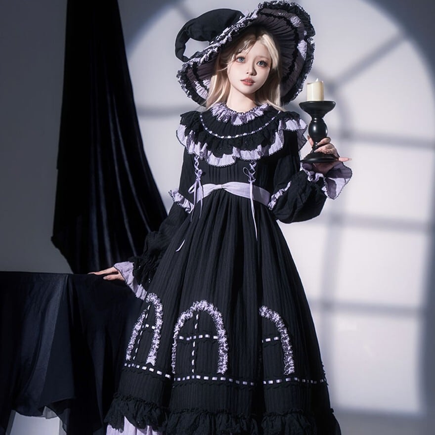 関連キーワード: #ロリータ #クラロリ #ワンピース #モノトーン #レース #エレガント #シック #可愛い #魔女帽 #ゴシック #ラベンダー