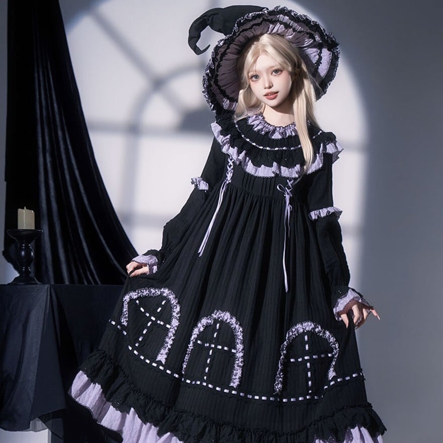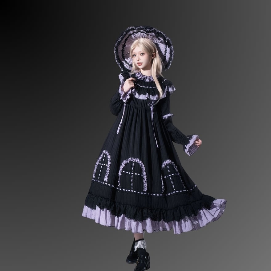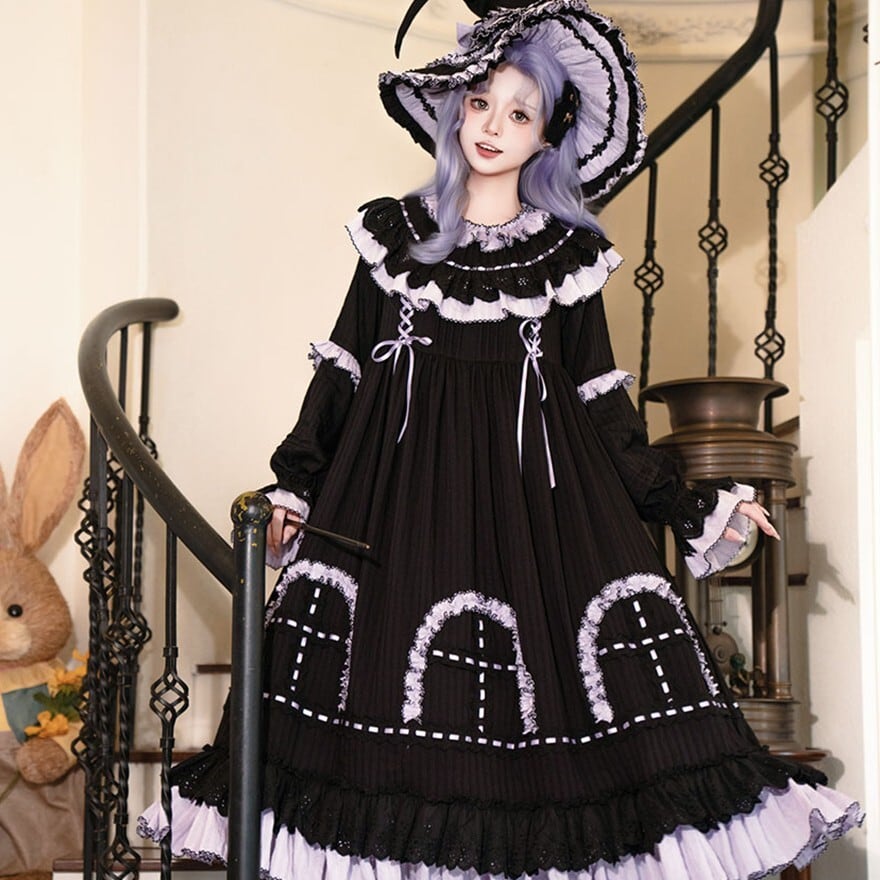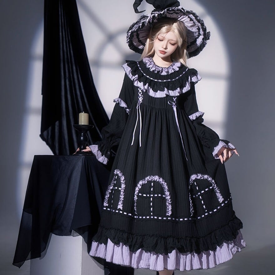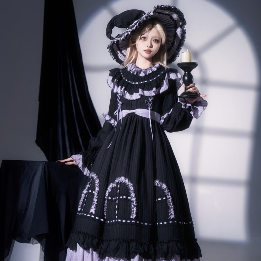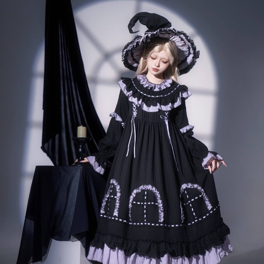 関連キーワード: #ロリータ #クラロリ #ワンピース #モノトーン #レース #エレガント #シック #可愛い #魔女帽 #ゴシック #ラベンダー