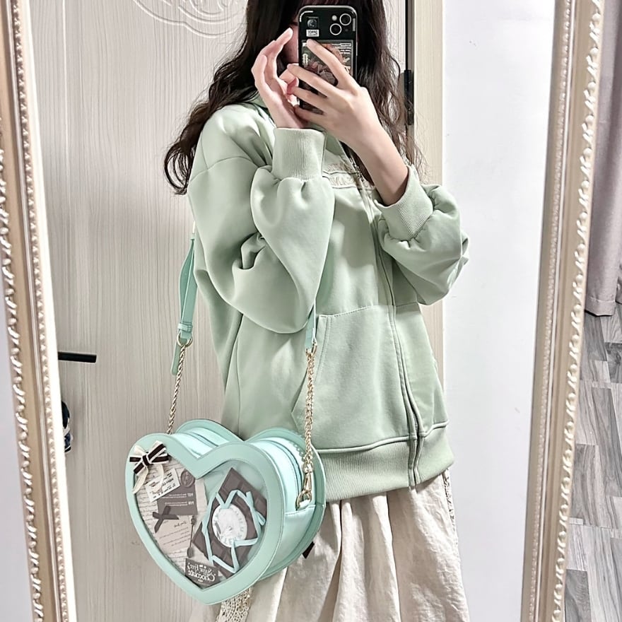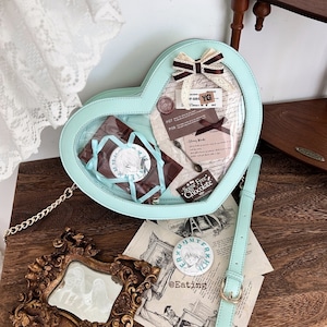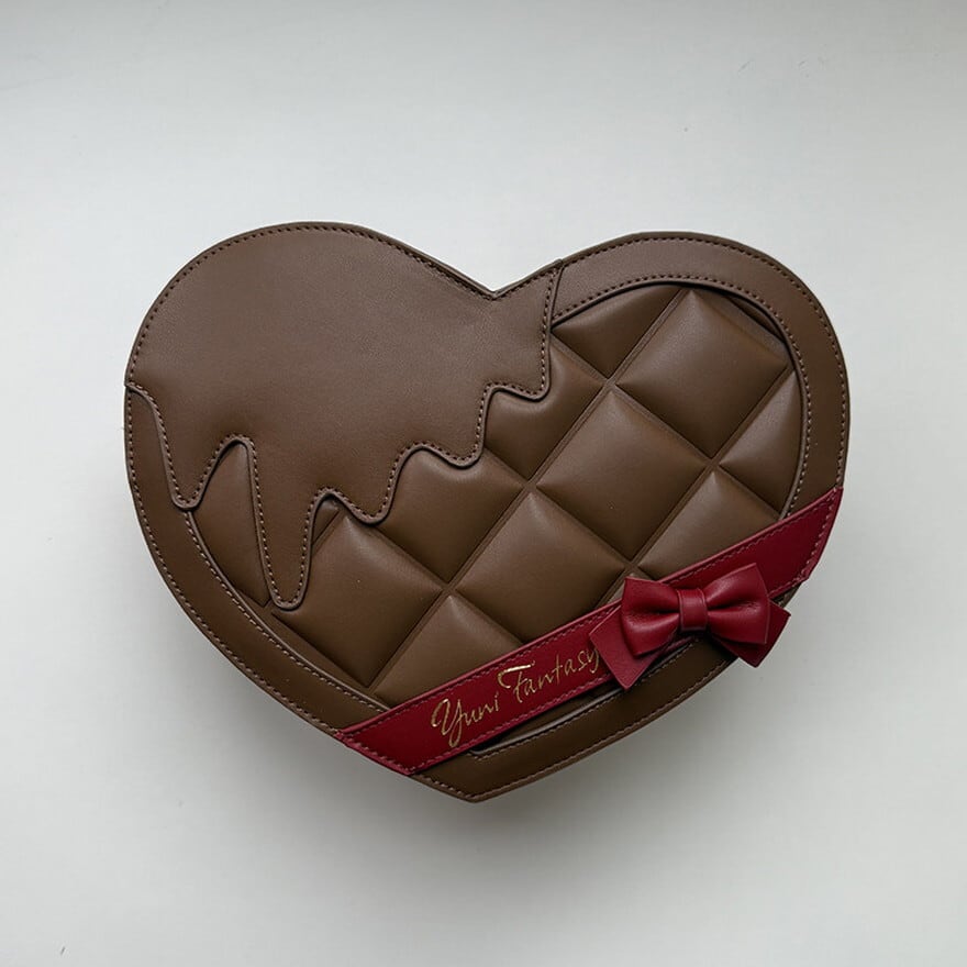 甘い板チョコのデザインとハート型の透明窓が特徴の、推し活とロリータファッションを上品に両立させたい方に最適な2way痛バッグです。