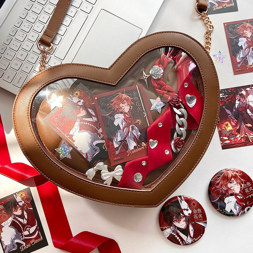・ハート×チョコの2wayデザイン:表面は透明窓の痛バッグ、裏面はとろけるチョコの大人可愛いデザインになっており、シーンに合わせて使い分けが可能です。