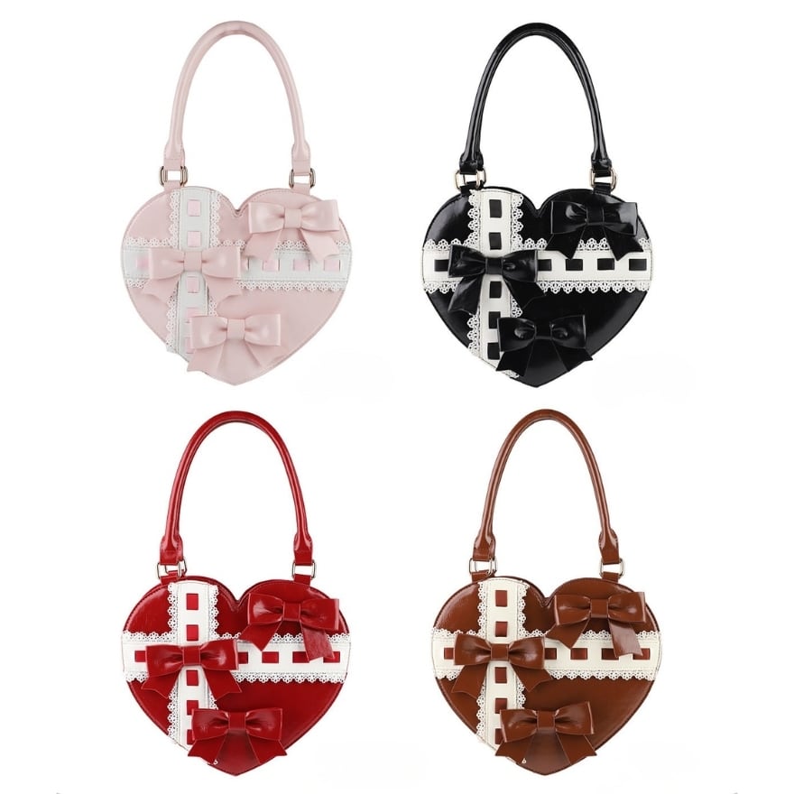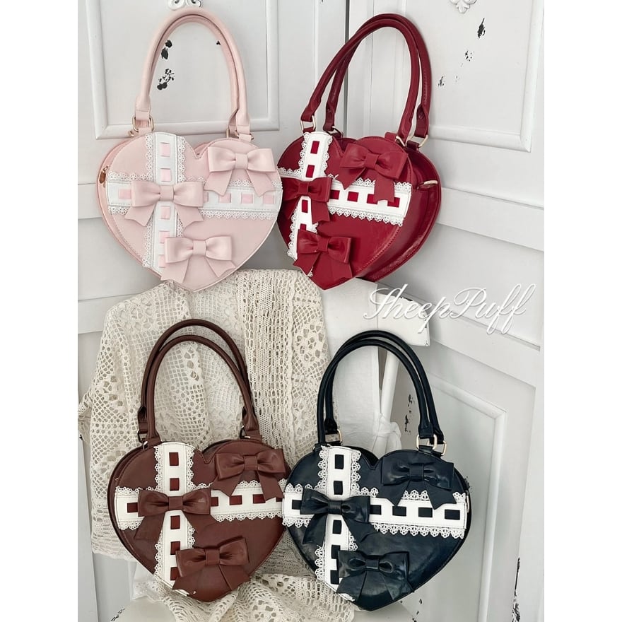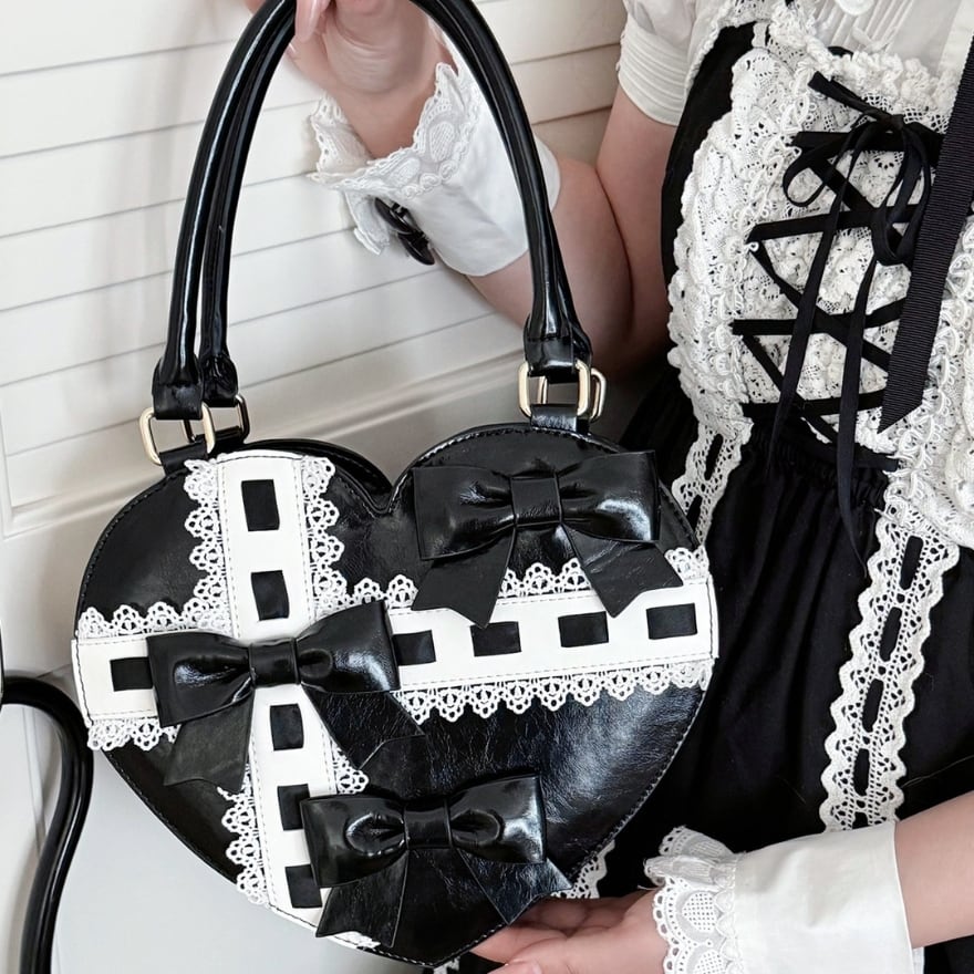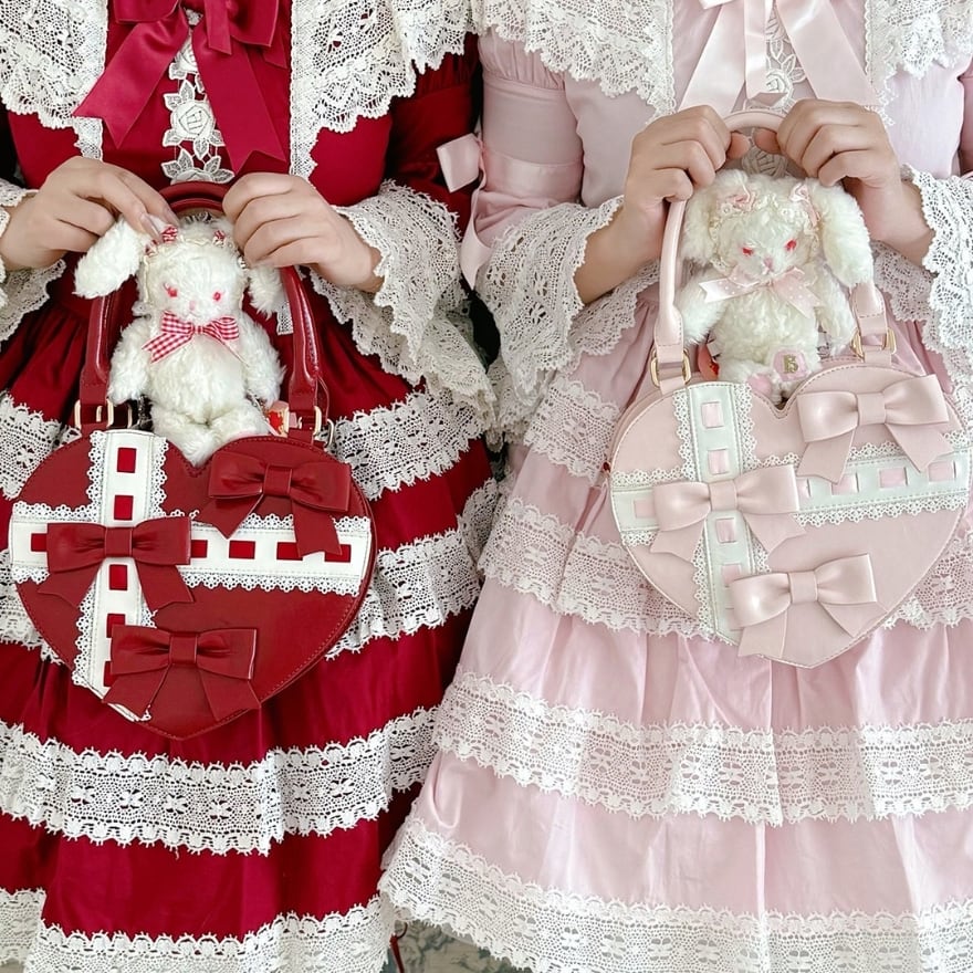 ロリィタ好きに|お茶会やイベント 甘ロリ ハート型 リボン ハンドバッグ レース 上品 可愛い 2way