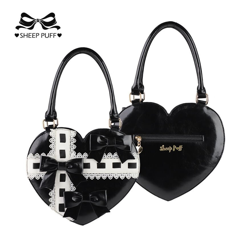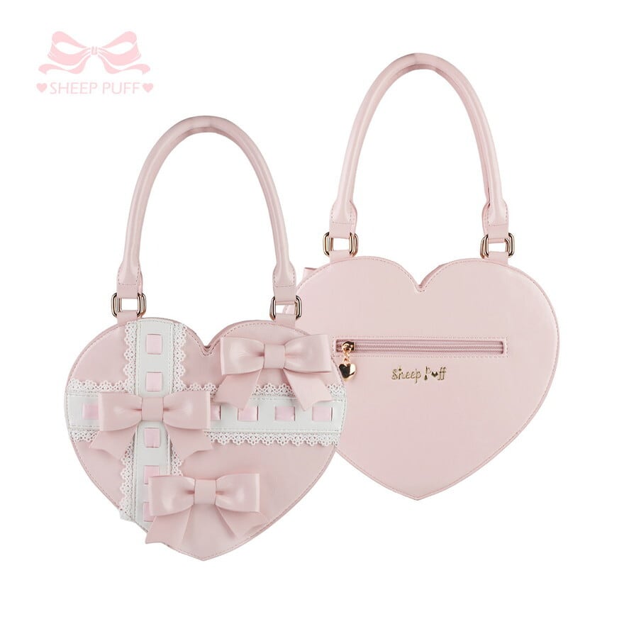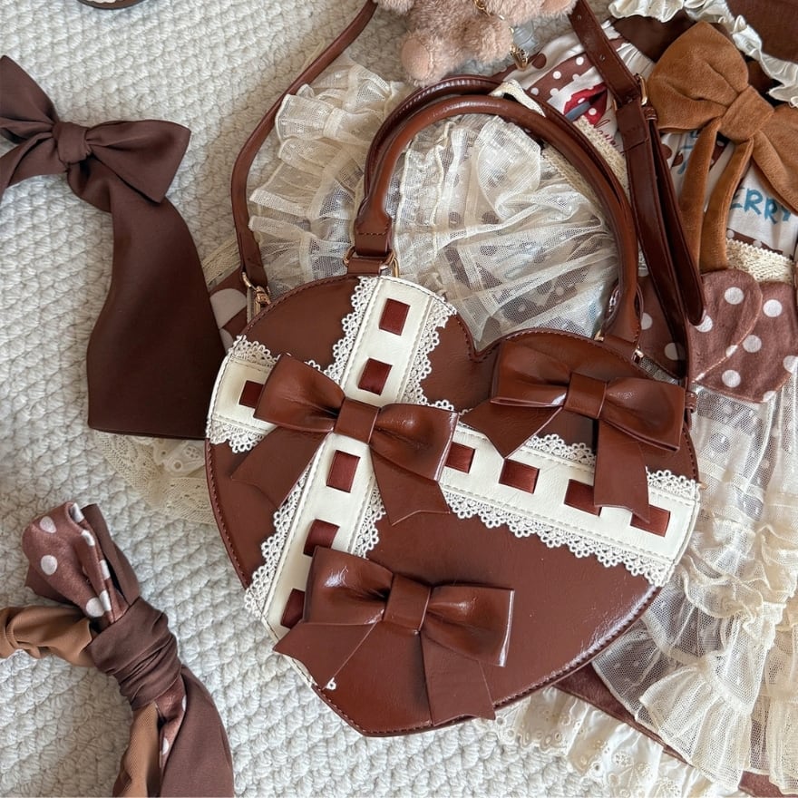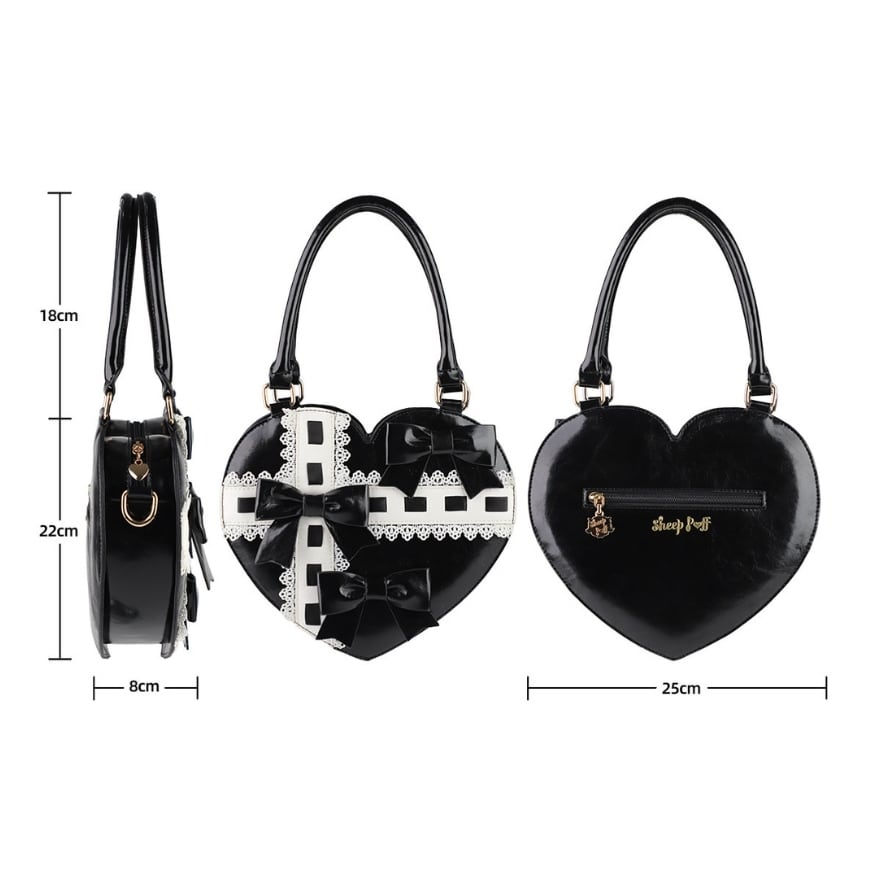 ロリィタ好きに|お茶会やイベント 甘ロリ ハート型 リボン ハンドバッグ レース 上品 可愛い 2way