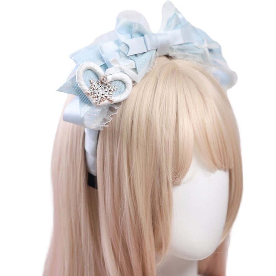 ・スカイブルーのビジューとシルバーの装飾: 清潔感と気品を与え、甘ロリの中にも大人っぽい透明感をプラスします。