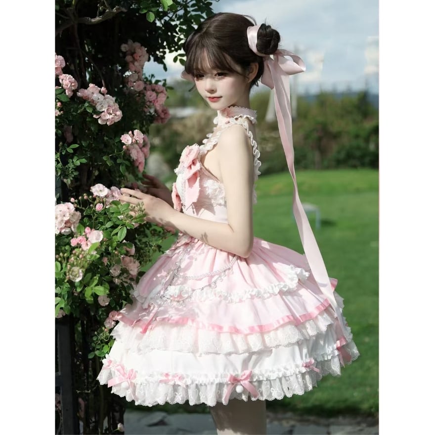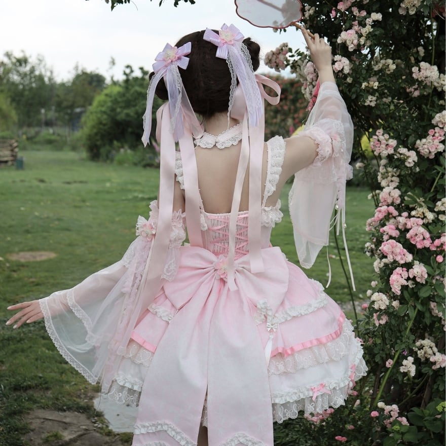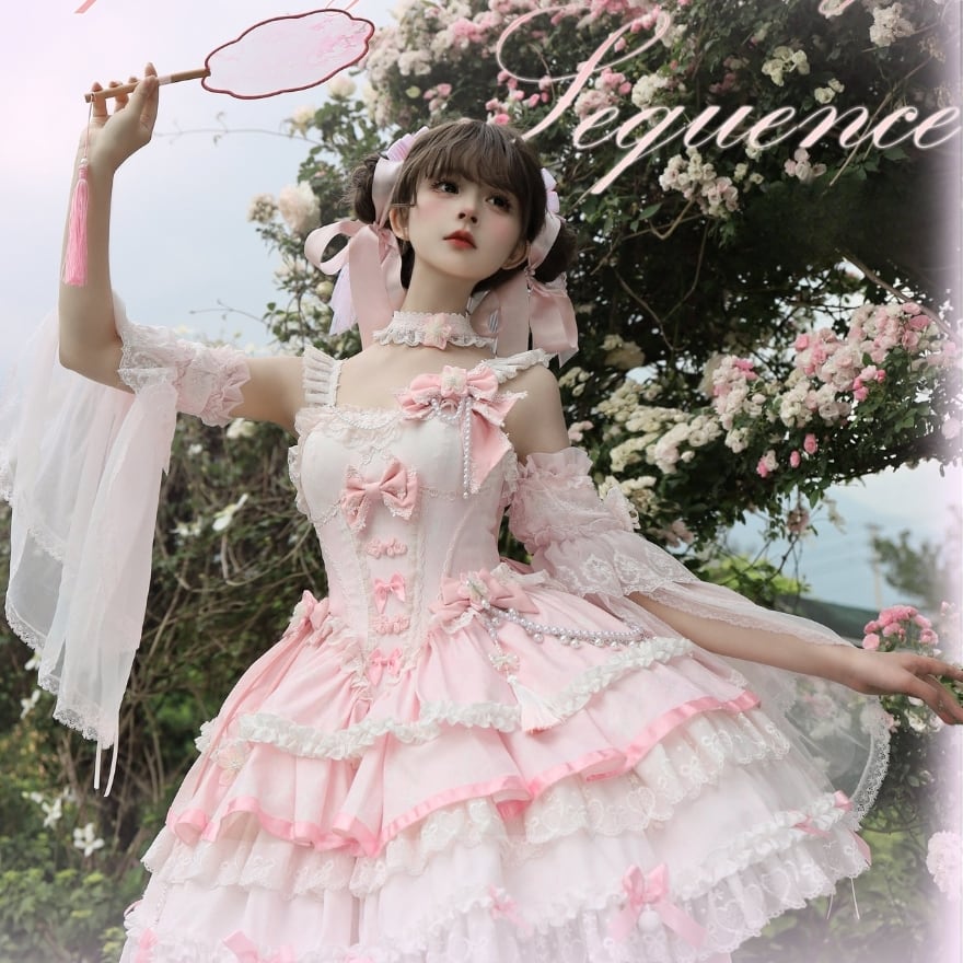 甘ロリやクラシカルロリィタを上品に楽しみたい初心者・大人ロリータ向けの、桜モチーフが印象的なジャンパースカートです。
