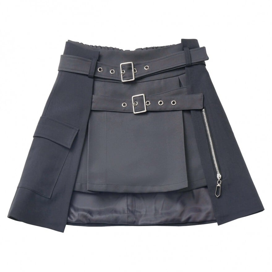 【サイバーパンクな機能美】2連ベルトとジップ使いがエッジを効かせるテック系ミニスカート ウエストベルト付き|天使と悪魔