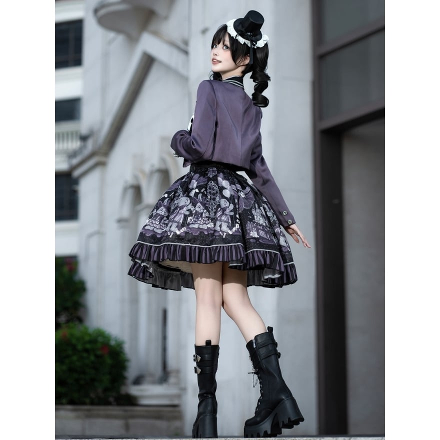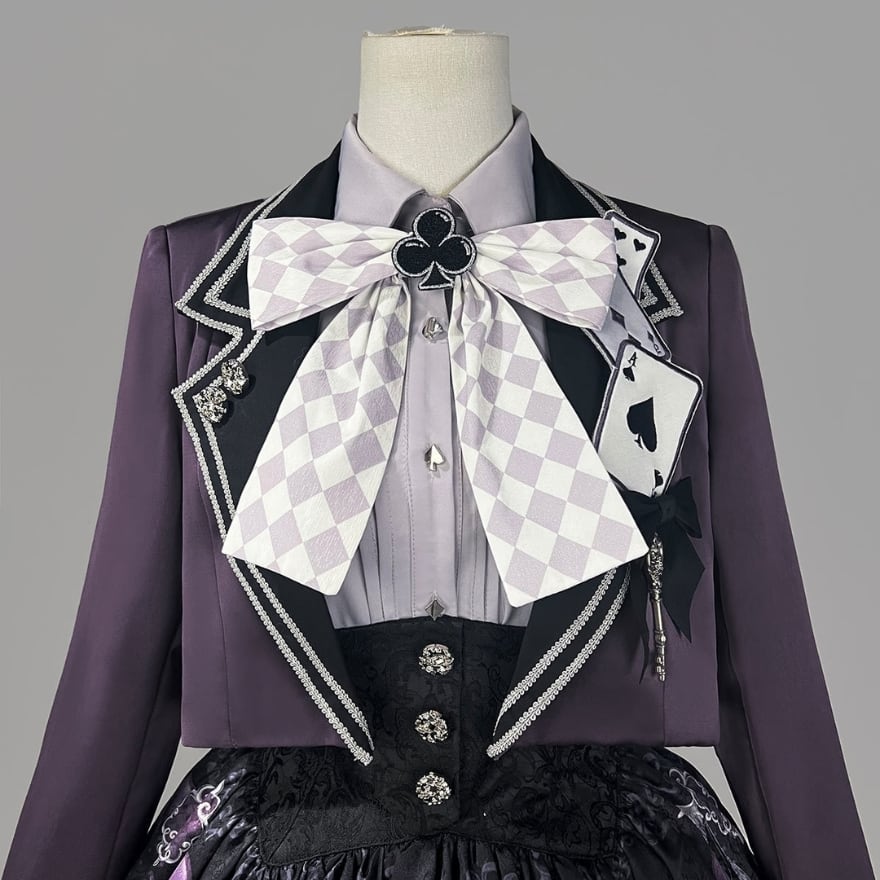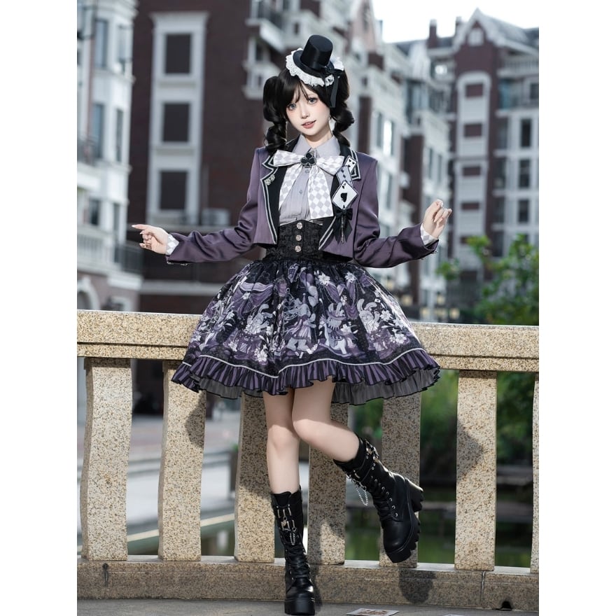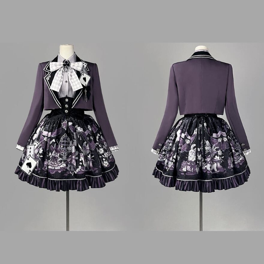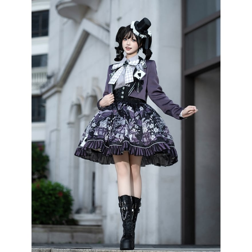 ファンタジー寄りの世界観を楽しみながら、ロリィタらしい物語性と上品さを求める方に向けた、ジャケット・ブラウス・スカートの3点セットです。
