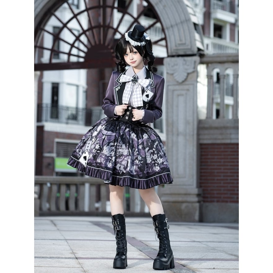 イベント コンカフェ衣装におすすめ |トランプ柄プリントのクラシカル ロリィタ 3点セット|天使と悪魔