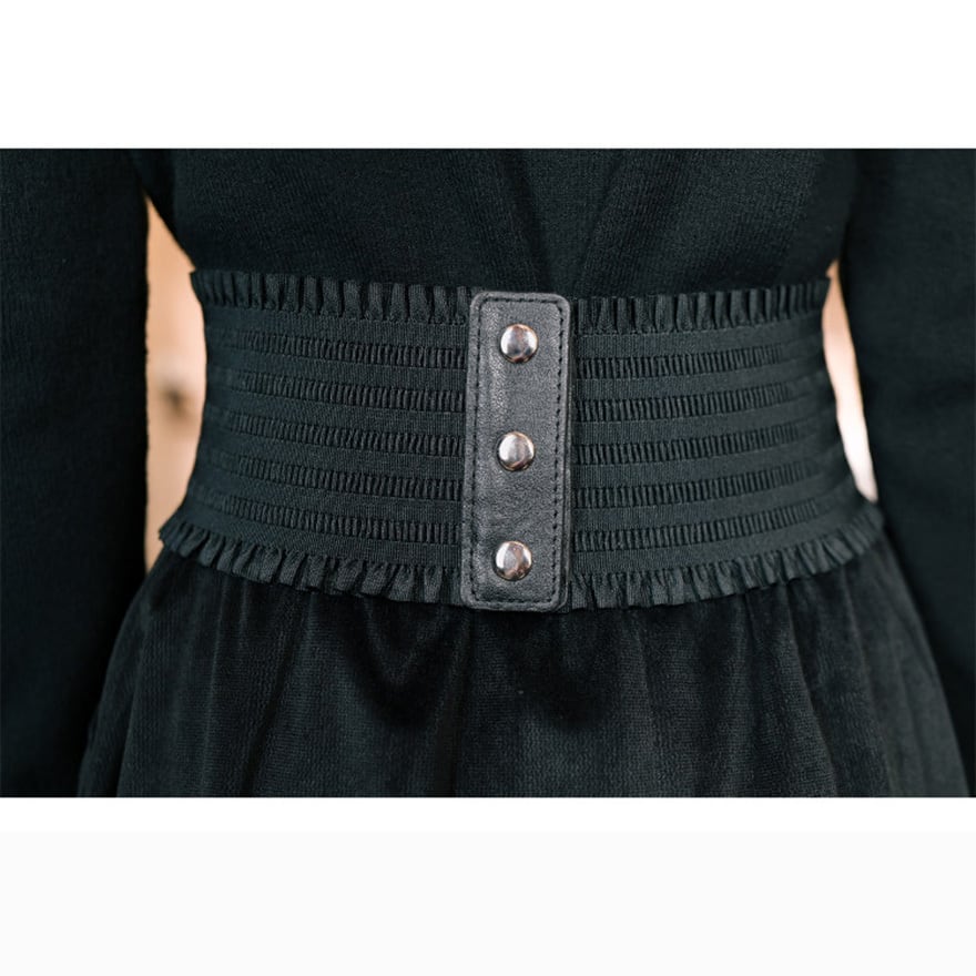伝統的なコルセットの造形美を保ちつつ、ゴム素材の採用により現代のカジュアルウェアやストリートモードとも親和性が高い、ハイブリッドなアクセサリーとしての立ち位置を確立しています。