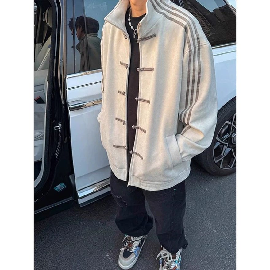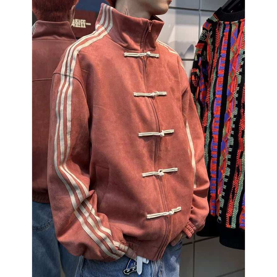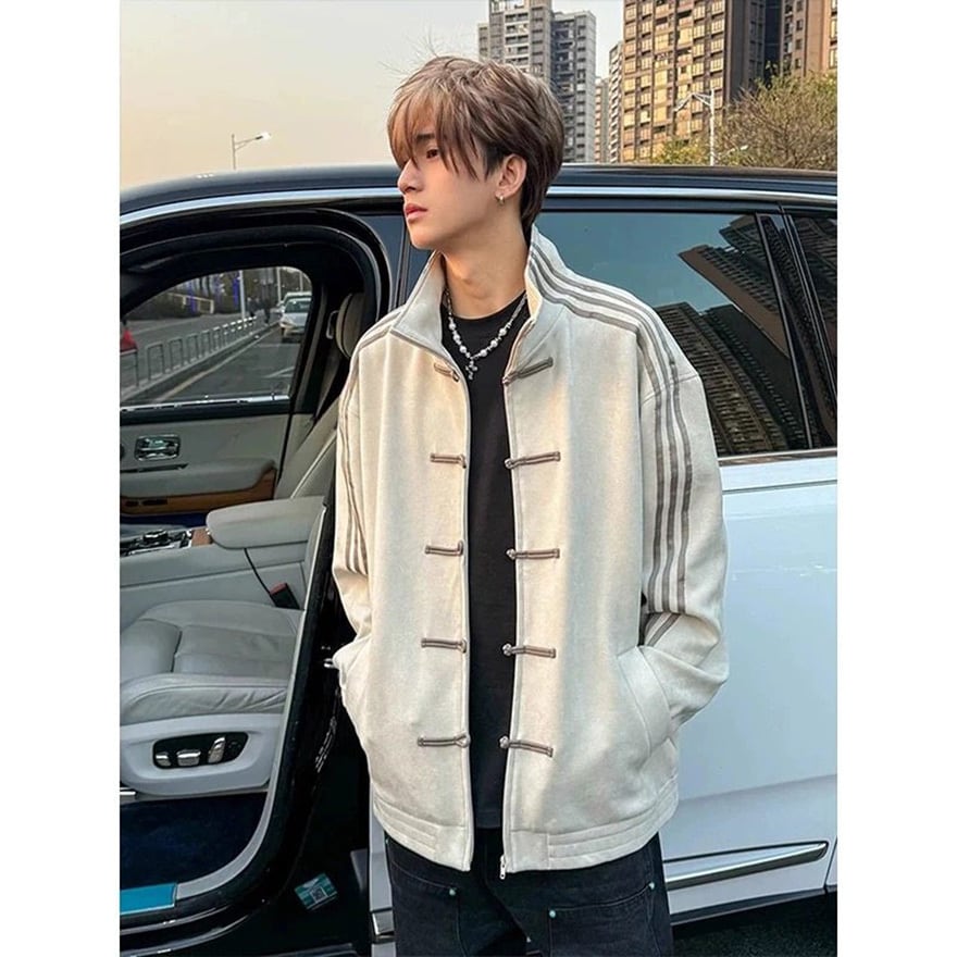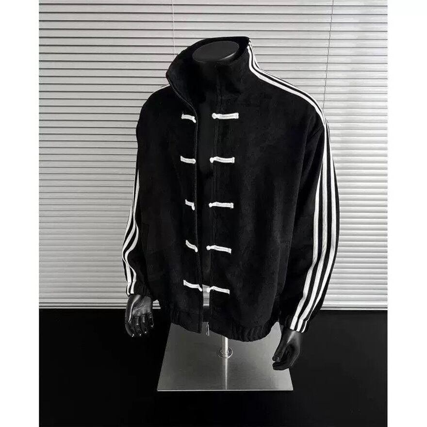 「定番のジャージスタイルでは個性が足りない」という悩みに対し、チャイナボタンを配置することで唯一無二のオリエンタルな要素を付与します。