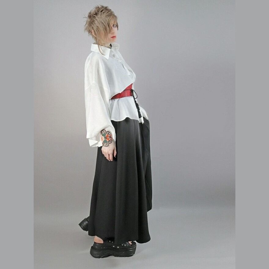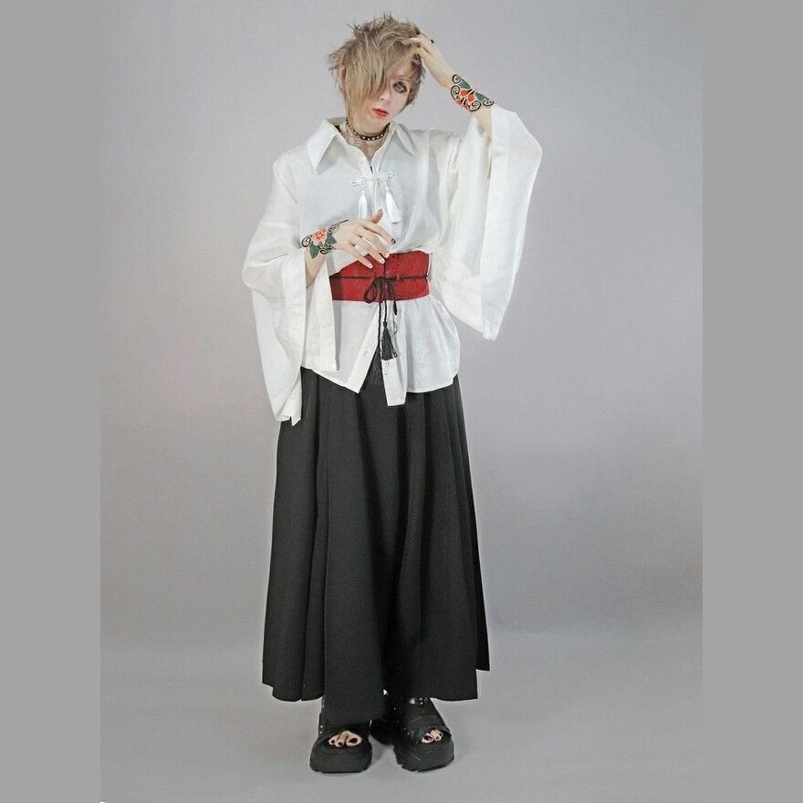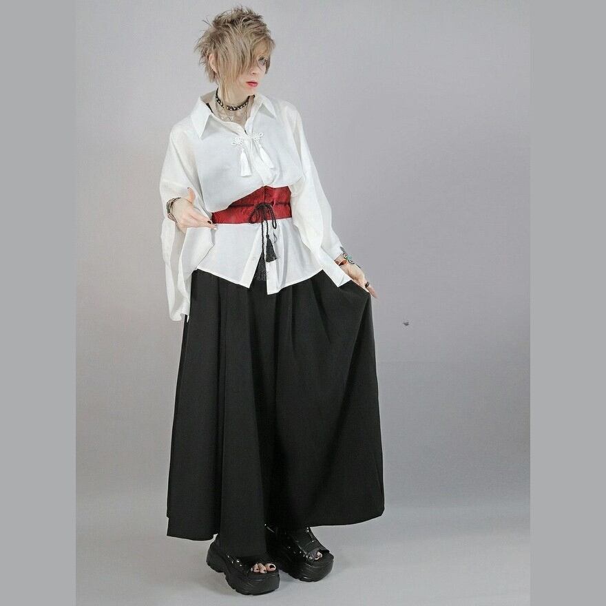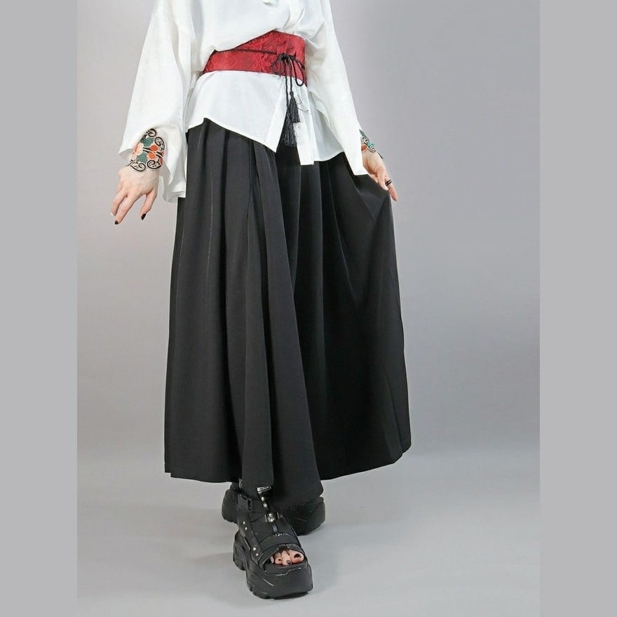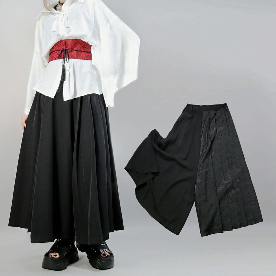 原宿系サブカルスタイルに取り入れやすい、不規則プリーツ仕様の和服風ワイドパンツ(ユニセックス対応)|天使と悪魔