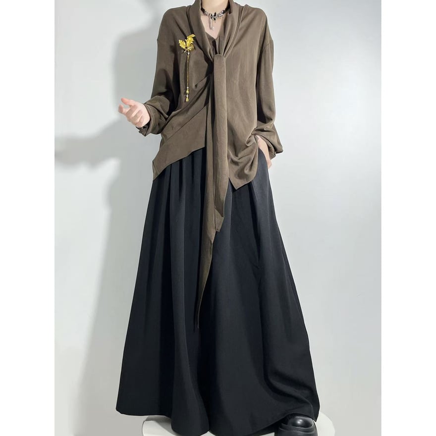 長袖仕様のトップスで、シンプルな配色とモード寄りのカッティングが確認できます。
