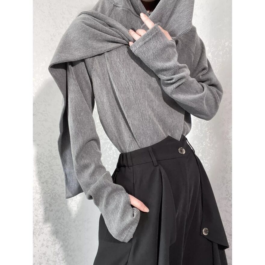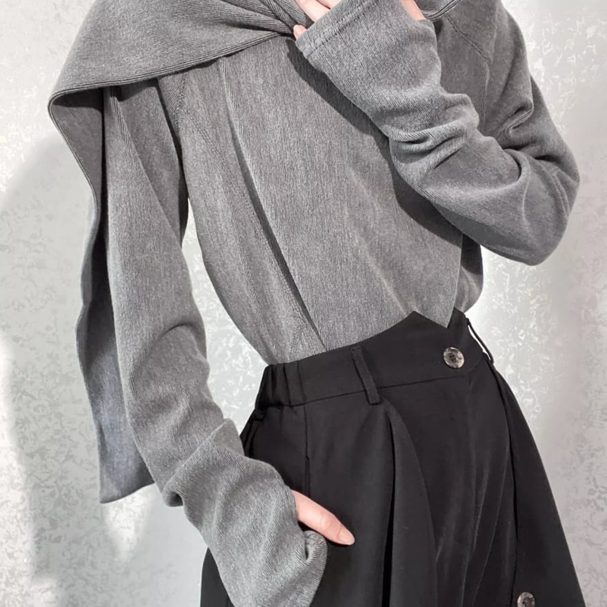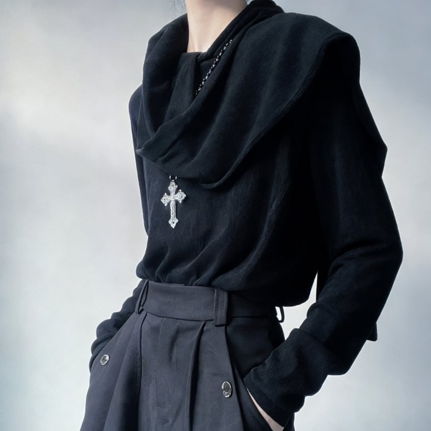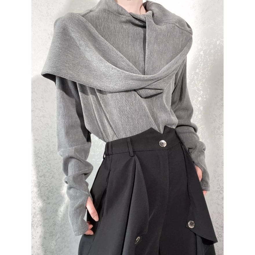 首元に自然なドレープを生むネックデザインが特徴的な、サブカル系長袖トップスです。