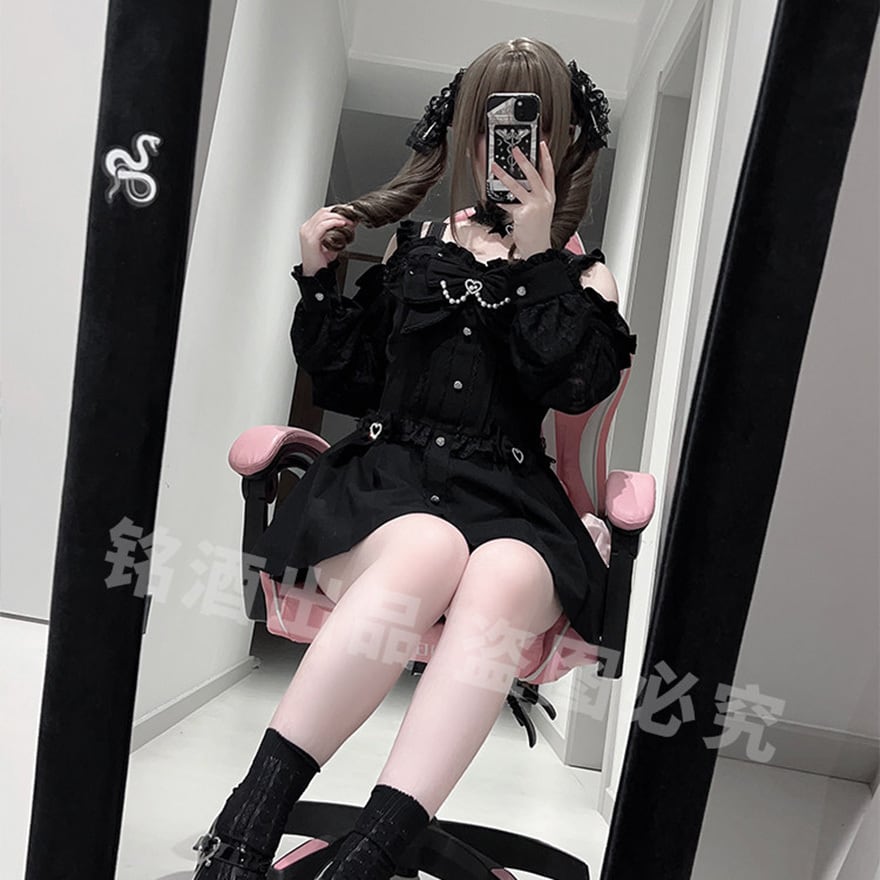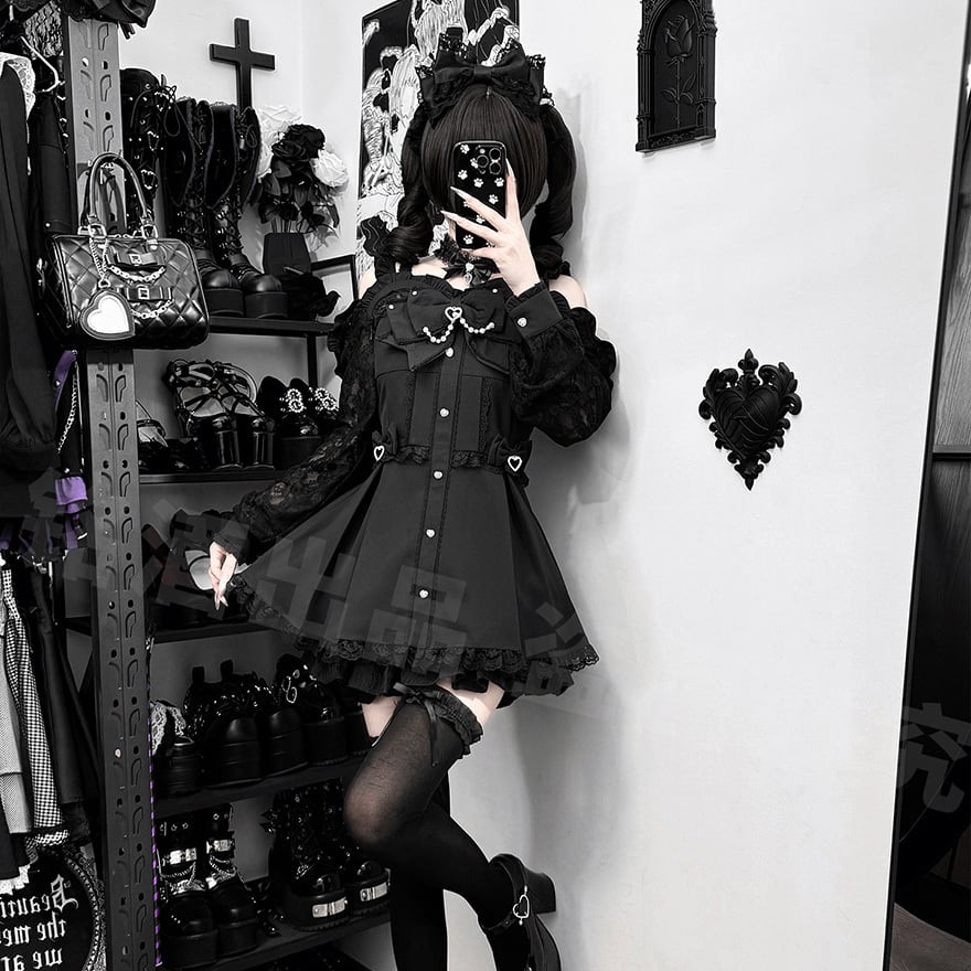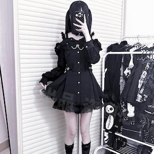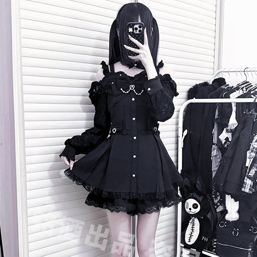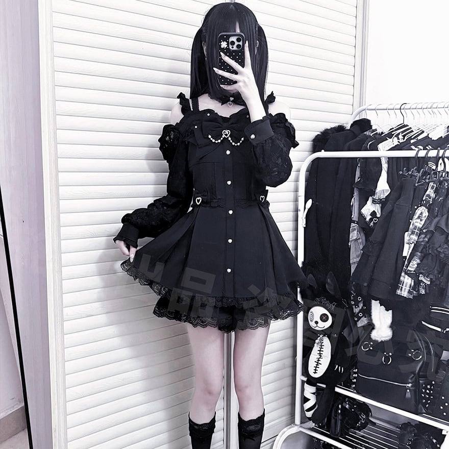 地雷系ワンピースセット(ワンピース、ショートパンツ、チョーカー、ヘッドドレス)