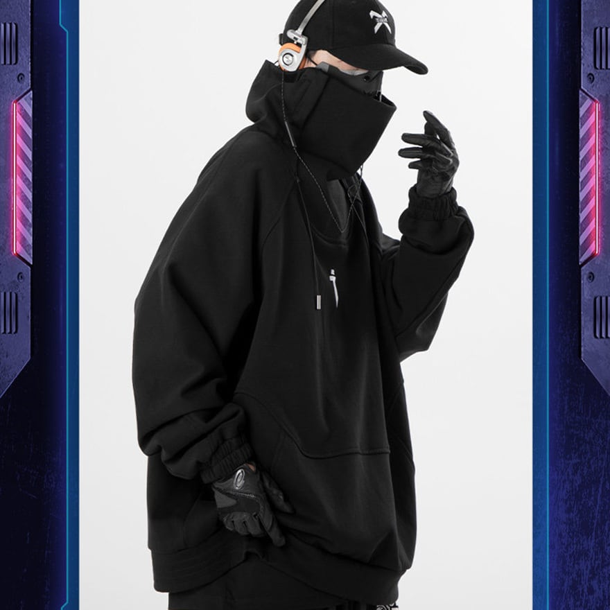 テックウェアや近未来的な世界観を好む方、顔を隠すシルエットで匿名性を重視したいサブカルチャーファンの方。