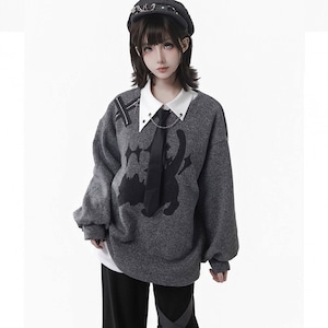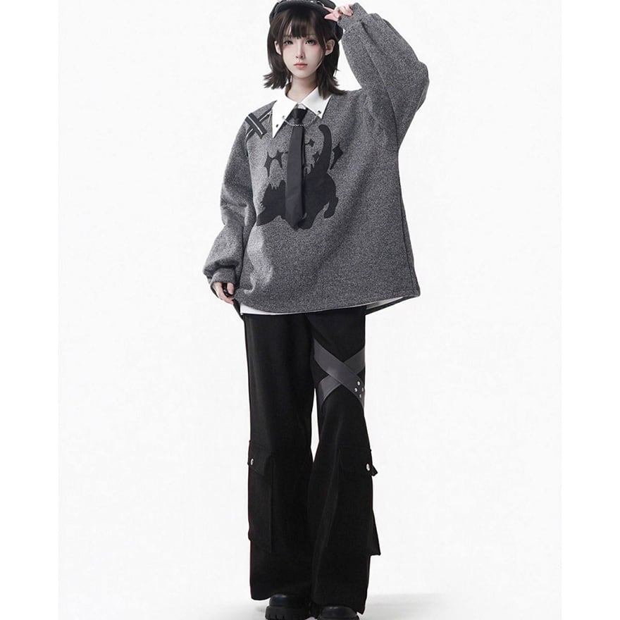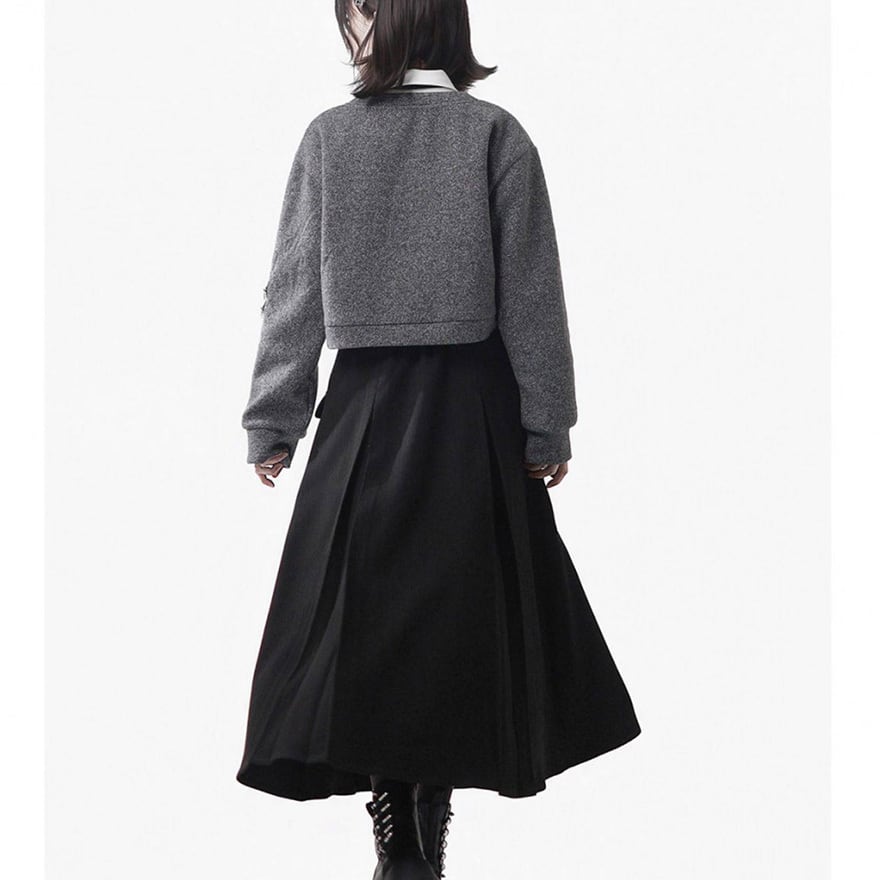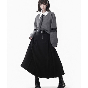 付属のベルトにより腰回りのシルエットを調整でき、制服風のコーディネートや日常のサブカル系スタイルを構築するのに適した一着です。