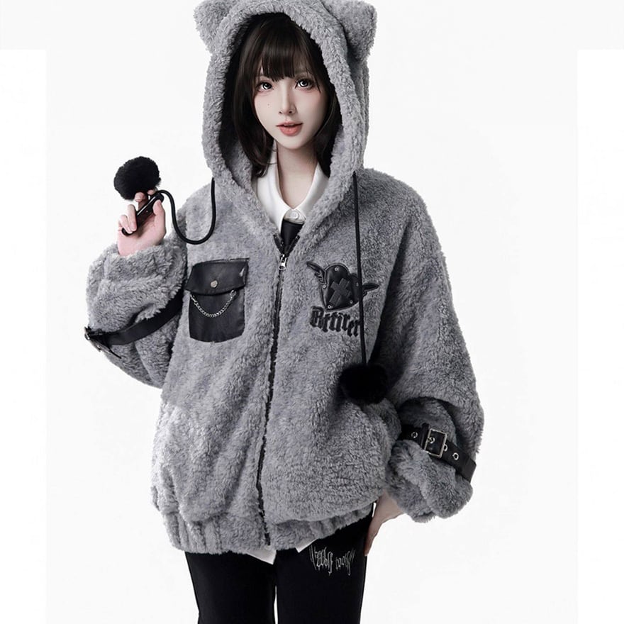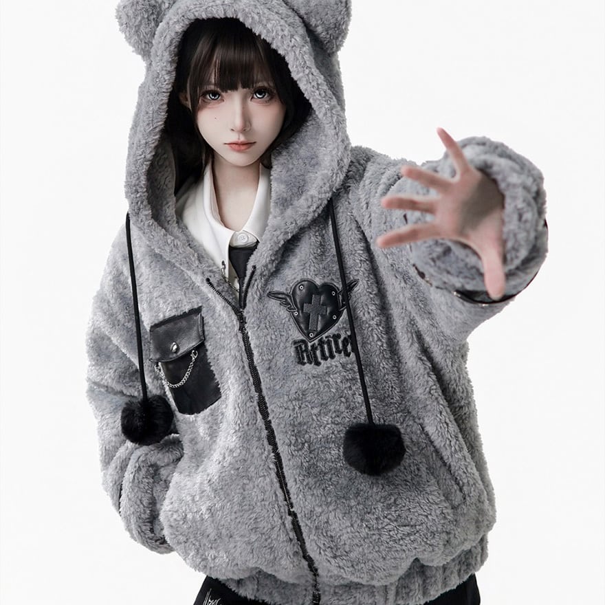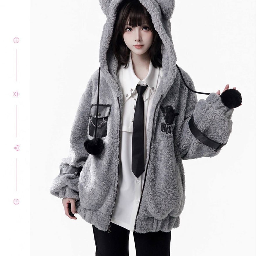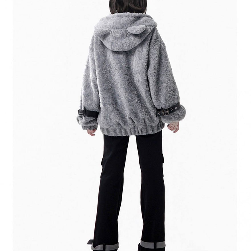 サブカル系ジャンルに属する、灰色のボア素材を使用した厚手のレッグウォーマーです。