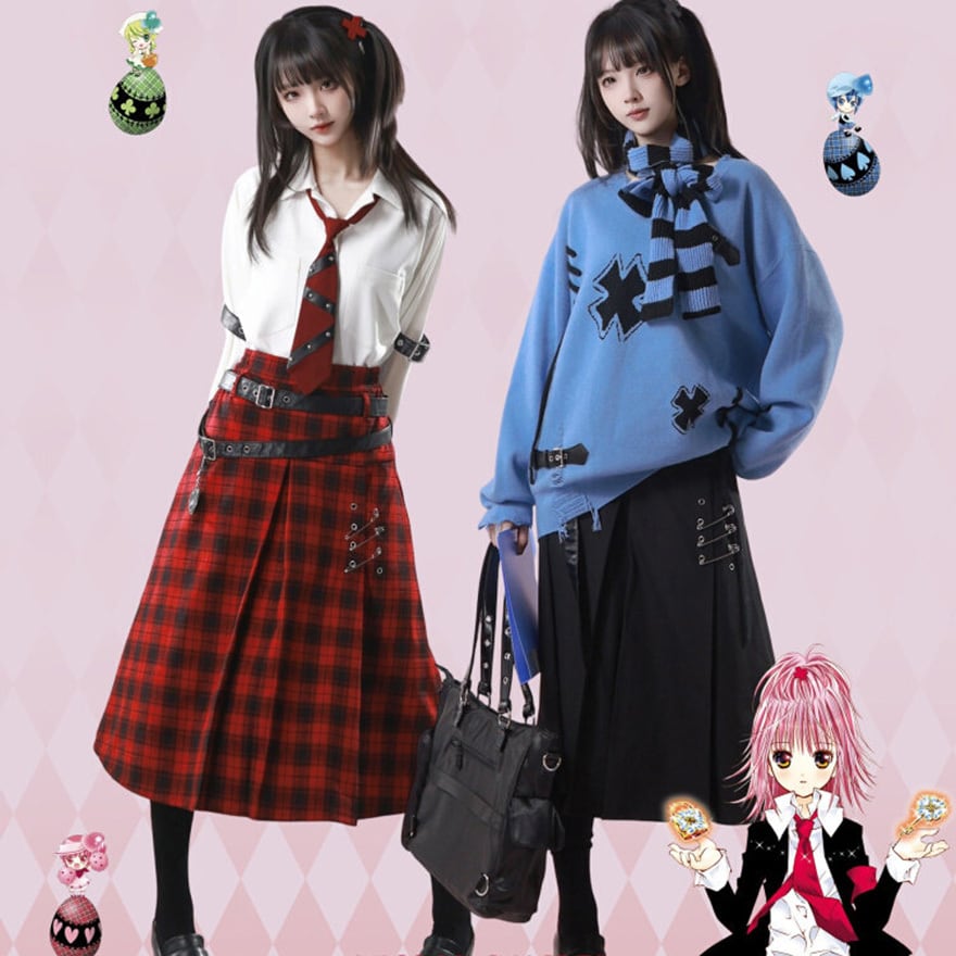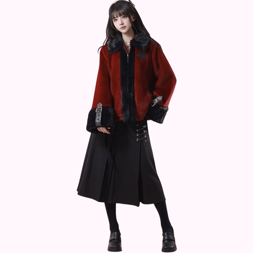 トップスをインすることでベルト装飾が引き立ち、シンプルなシャツやカットソーを合わせるだけで地雷系の世界観を完成させることができます。