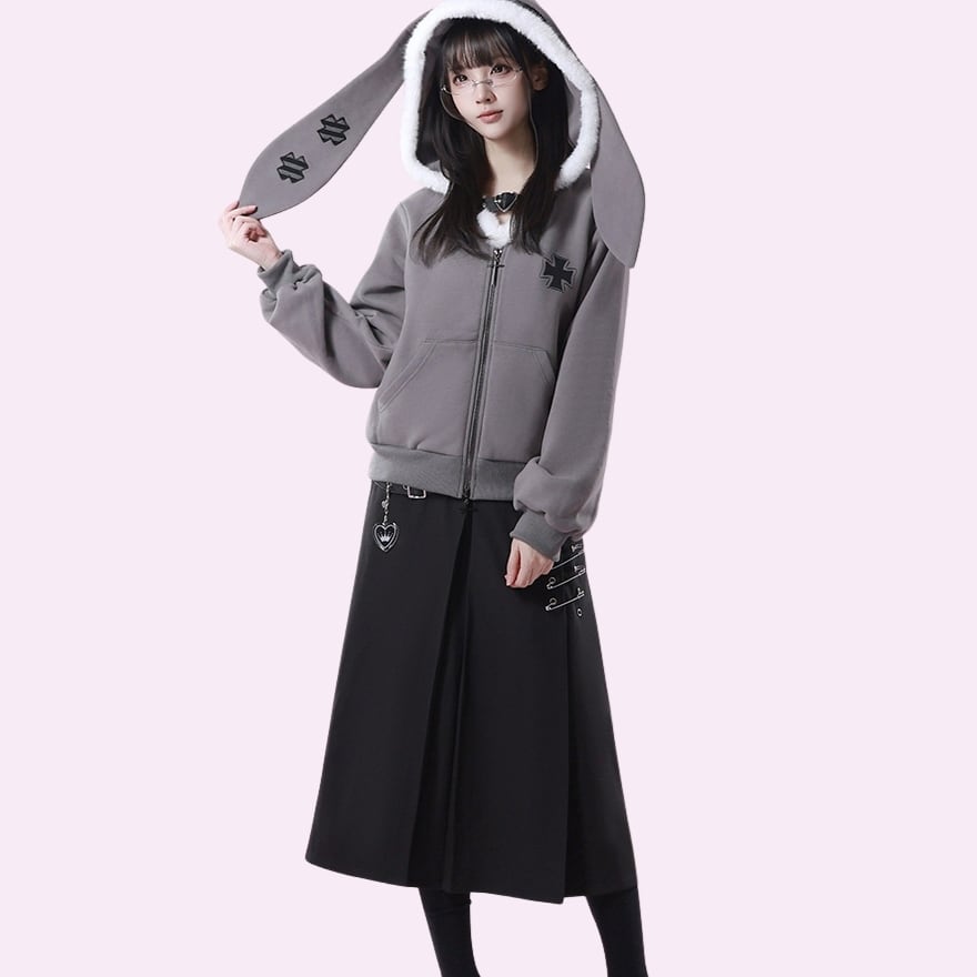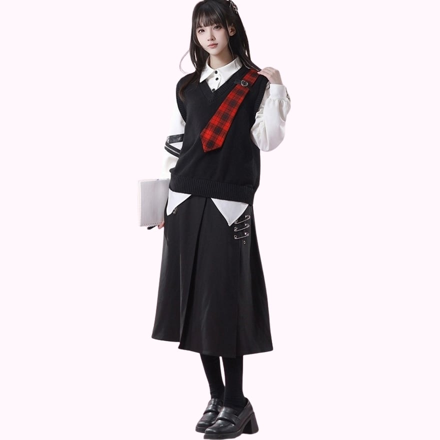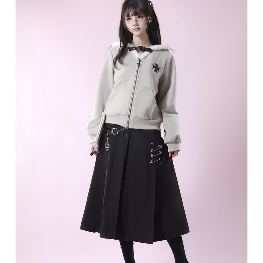 地雷系ファッションを好む方/ベルトやピンなどの金属装飾を重視する方/膝下丈でシルエットの綺麗なスカートを探している方
