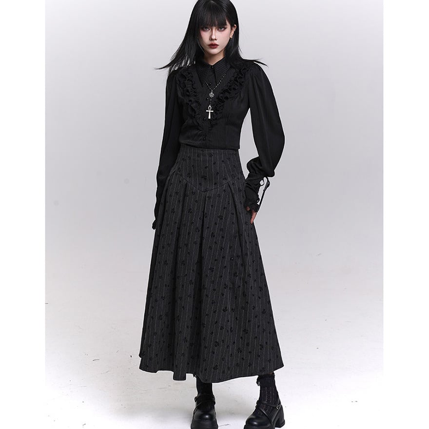 ゴシック寄りの世界観を反映したロング丈のフレアスカートです。