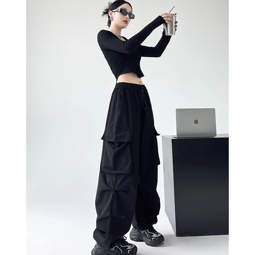 ドローストリング仕様 ワイドカーゴパンツ|ユニセックス対応・ストリート/サブカル系ファッション向け|天使と悪魔
