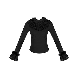 首元を贅沢に彩る多層ラッフルフリルが目を惹く、高貴な佇まいのゴシックブラウス。