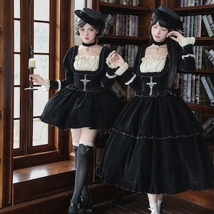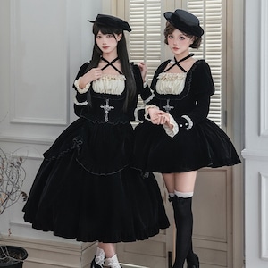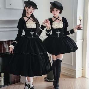 漆黒のドールベロア・ミニセットアップ 4点セット(ジャボタイ・リボン・ハット付)|天使と悪魔