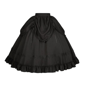 スカートは多層のフリルが重なり、歩くたびにドラマチックな動きを演出。付属のヘッドドレス(ミニハット)が、貴族的な華やかさを添えます。