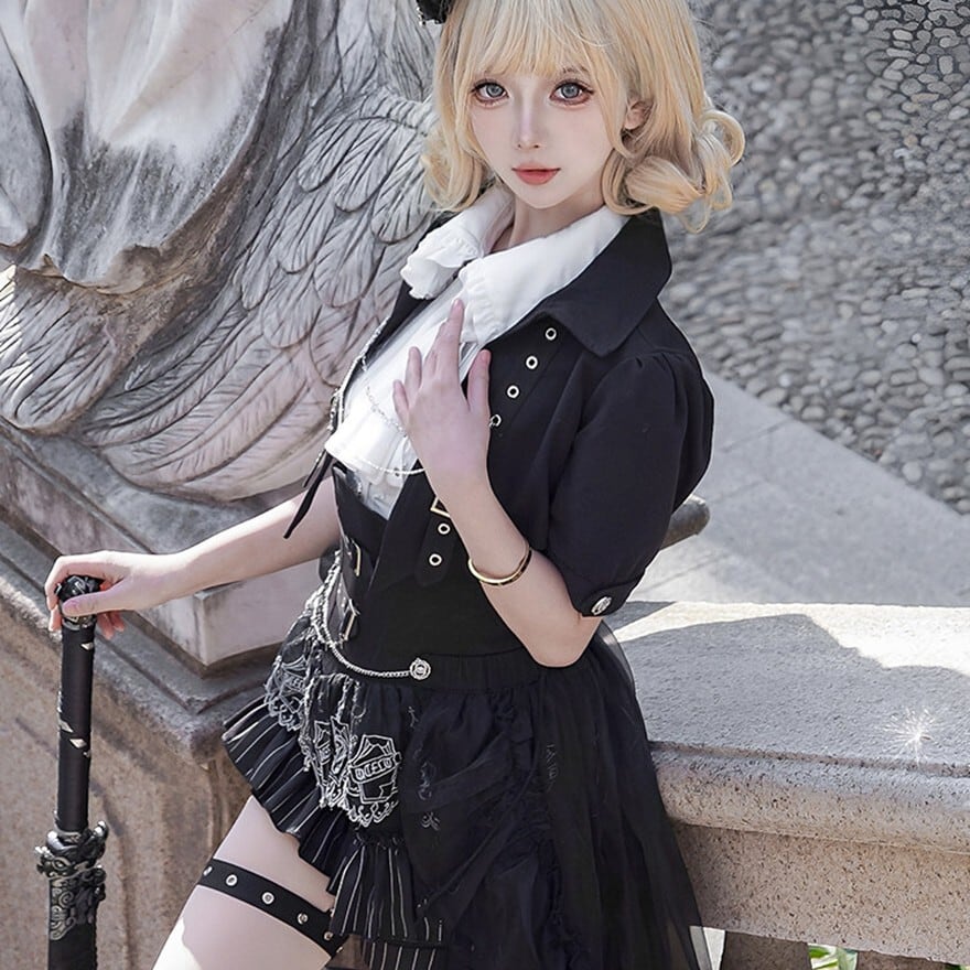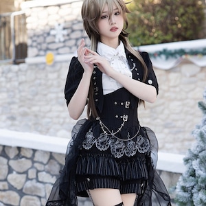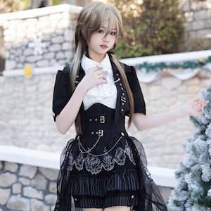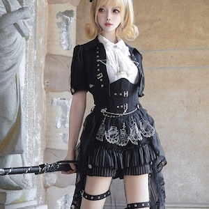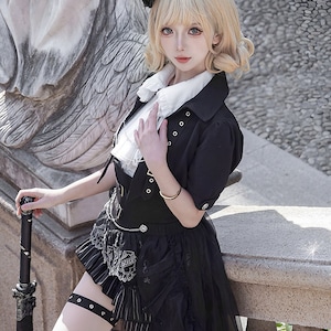 軍服風ゴシックパンク セットアップ | ジャケット トップス ショートパンツ 3点セット|天使と悪魔