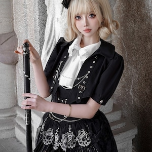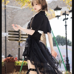 ジャケット、トップス、パンツが計算し尽くされたバランスでセットになっているため、これ一つで完璧な「軍服風ゴシック」が完成します。