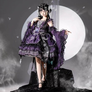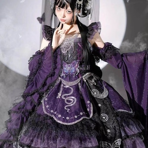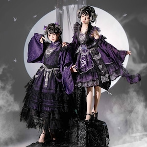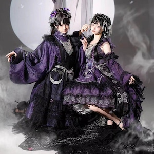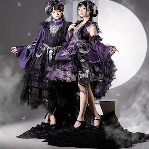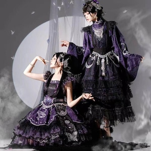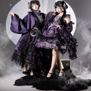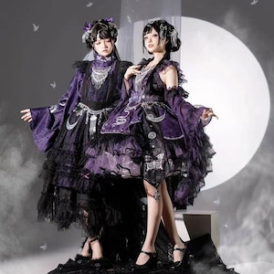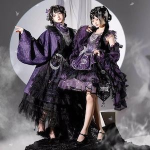 伝統的な和の美しさと現代のサブカルスタイルが融合した、心躍る着物風セットアップです。漆黒に映える鮮やかな和柄と、揺れるタッセルがドラマチックな装いを演出。着脱しやすい設計ながら本格的な「和」の佇まいを楽しめる、ライブ衣装やイベント参戦にぴったりな当店限定の主役級アイテムです。