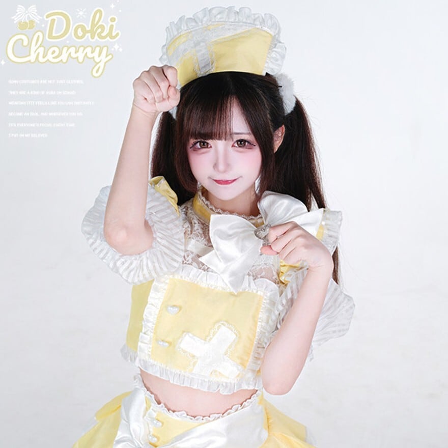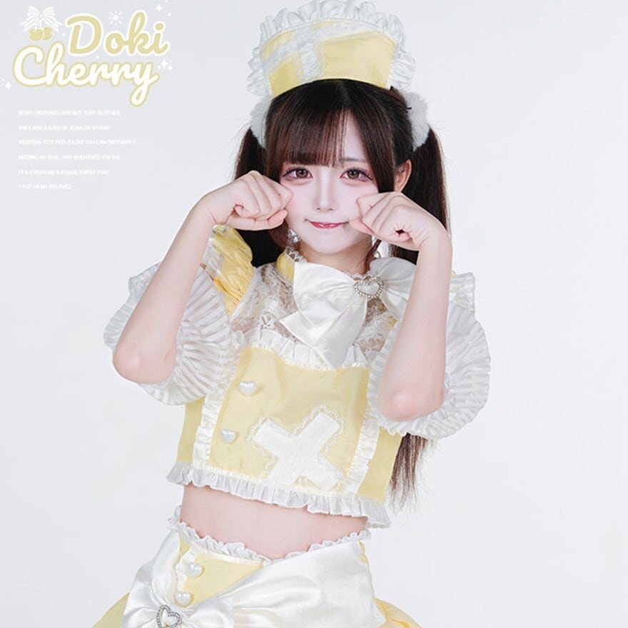 フリルレースが縁取られたナースキャップ風デザインで、同シリーズのセットアップと合わせることでより統一感のあるスタイルを楽しめます。