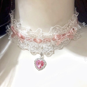 純欲ピンク - ピンクダイヤ風レースチョーカー