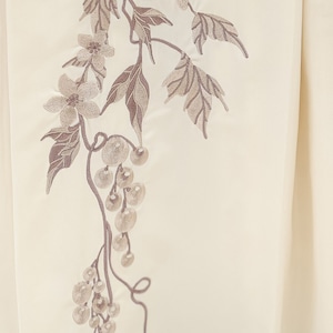 スカート裾には、細部までこだわり抜いた蝶と植物の刺繍が施されています。