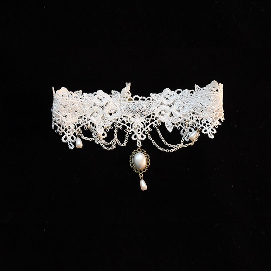【ヴィンテージ風】レースチョーカー ネックレス|クラシカル ロリィタ パール チェーン