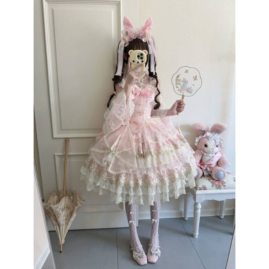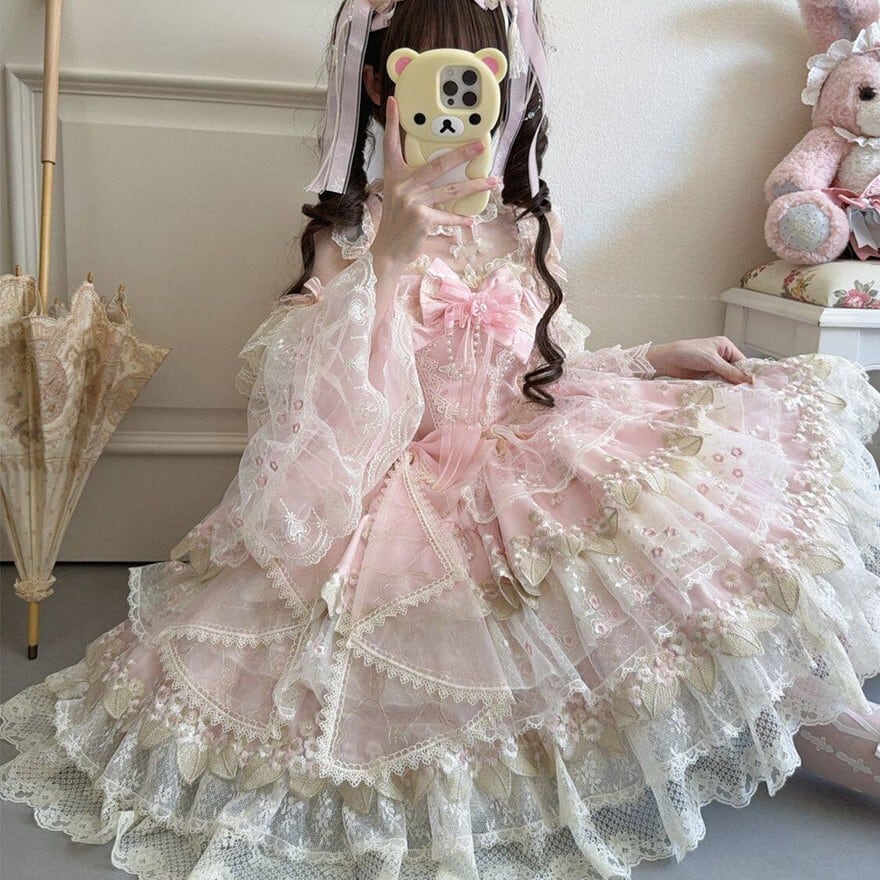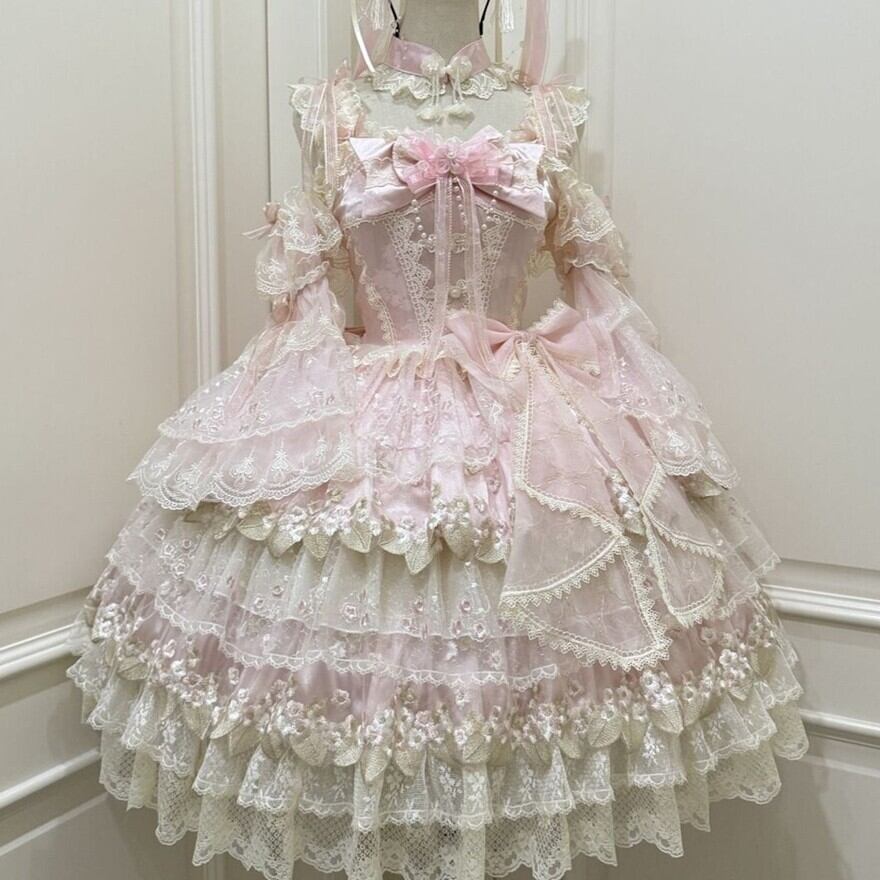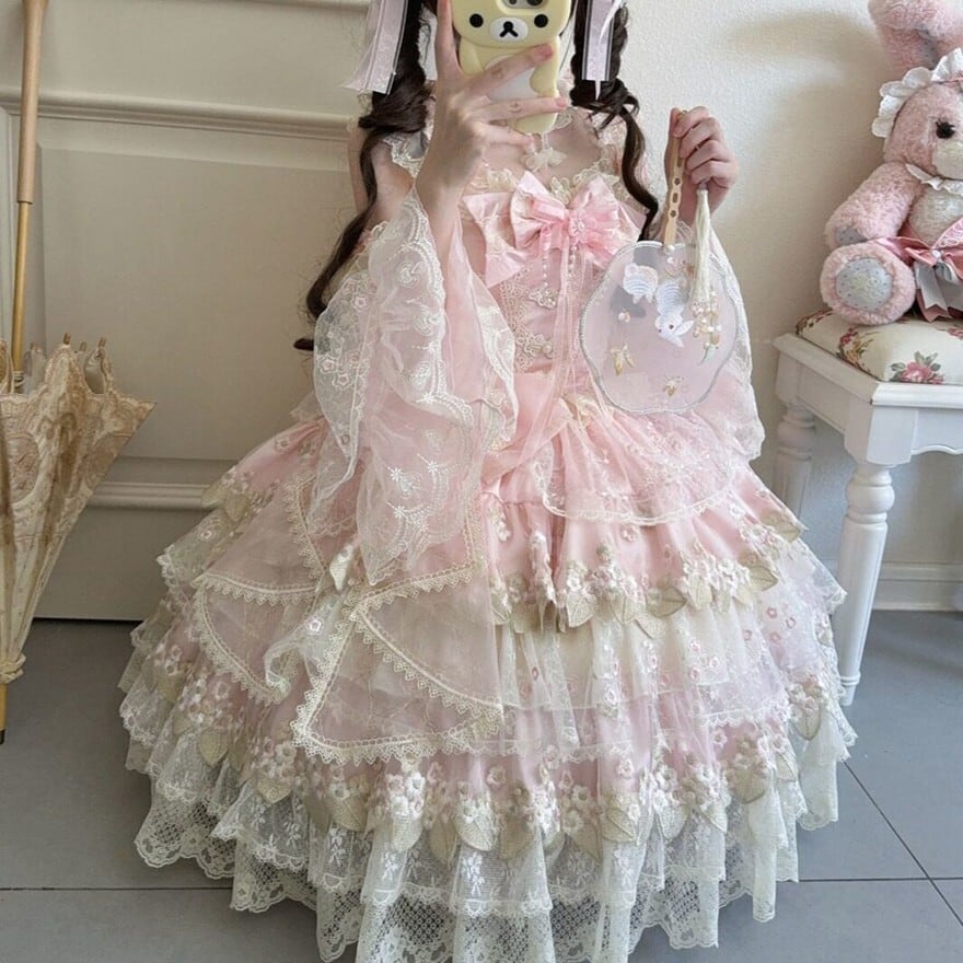 【究極の甘ロリ】姫袖付き レース JSK|ボリュームフリル フラワー刺繍 甘ロリ|天使と悪魔