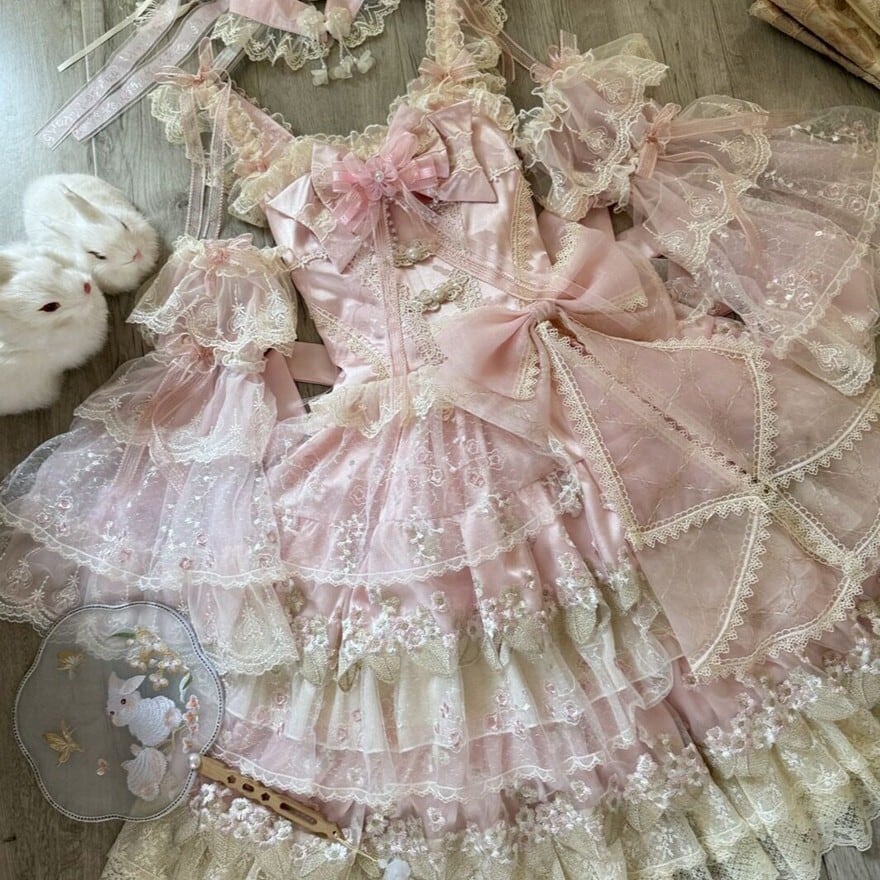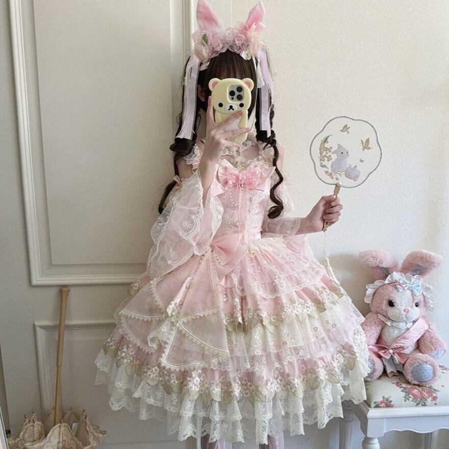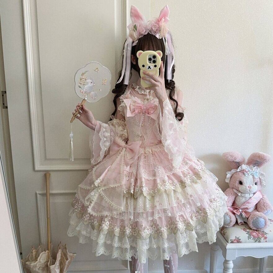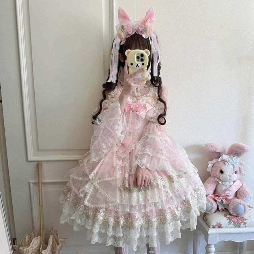【究極の甘ロリ】姫袖付き レース JSK|ボリュームフリル フラワー刺繍 甘ロリ|天使と悪魔