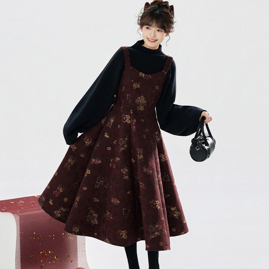 クラシカル ドルマン袖ハイネックニット×ジャガード柄JSK セットアップ|天使と悪魔