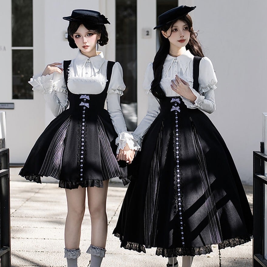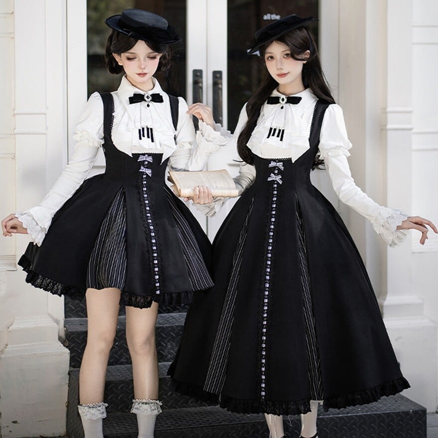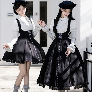「ロリータは甘すぎて年齢的に浮かないか」「初心者で小物の合わせ方が分からない」といった不安を、露出を抑えたロング丈とシックな黒×白の配色が解消します。 専門知識がなくても、付属の帽子やリボンを合わせるだけで、洗練された「大人の可愛らしさ」を演出できる安心のセット内容です。