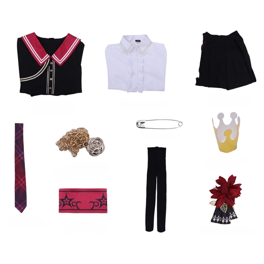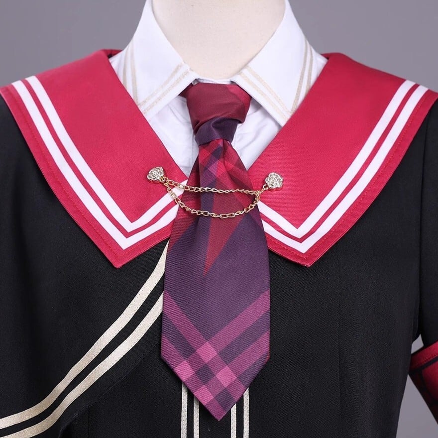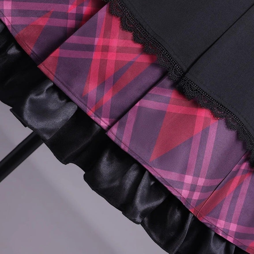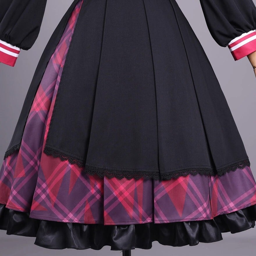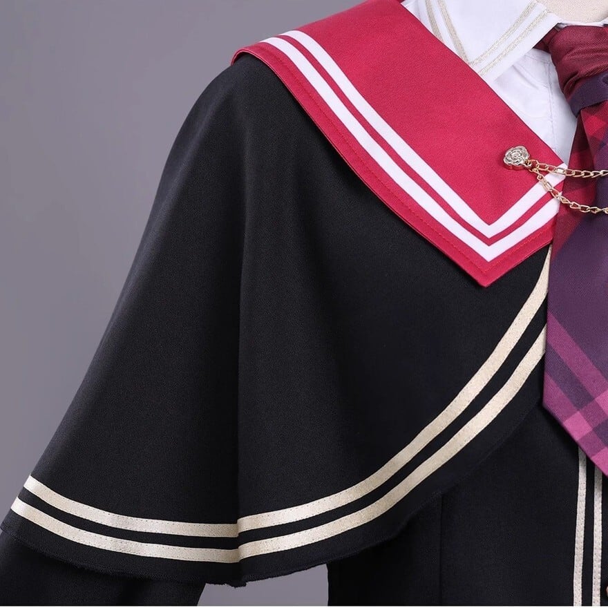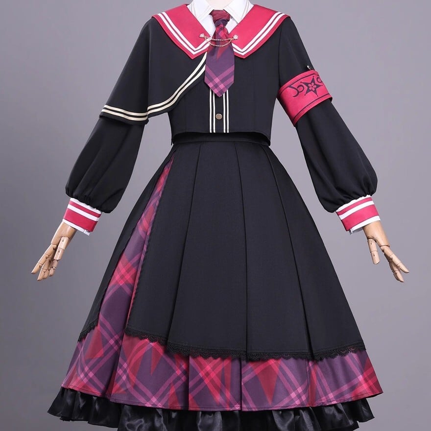 これ一着で理想の魔法少女へ。ケープ風セーラーブラウス、チェックスカートに加え、ネクタイや腕章、髪飾りまで揃う豪華10点セットです。赤と黒のコントラストが映える制服デザインは、コスプレやコンカフェ衣装にも最適。細部までこだわったアクセサリーが、あなたの変身を完璧にサポートします。