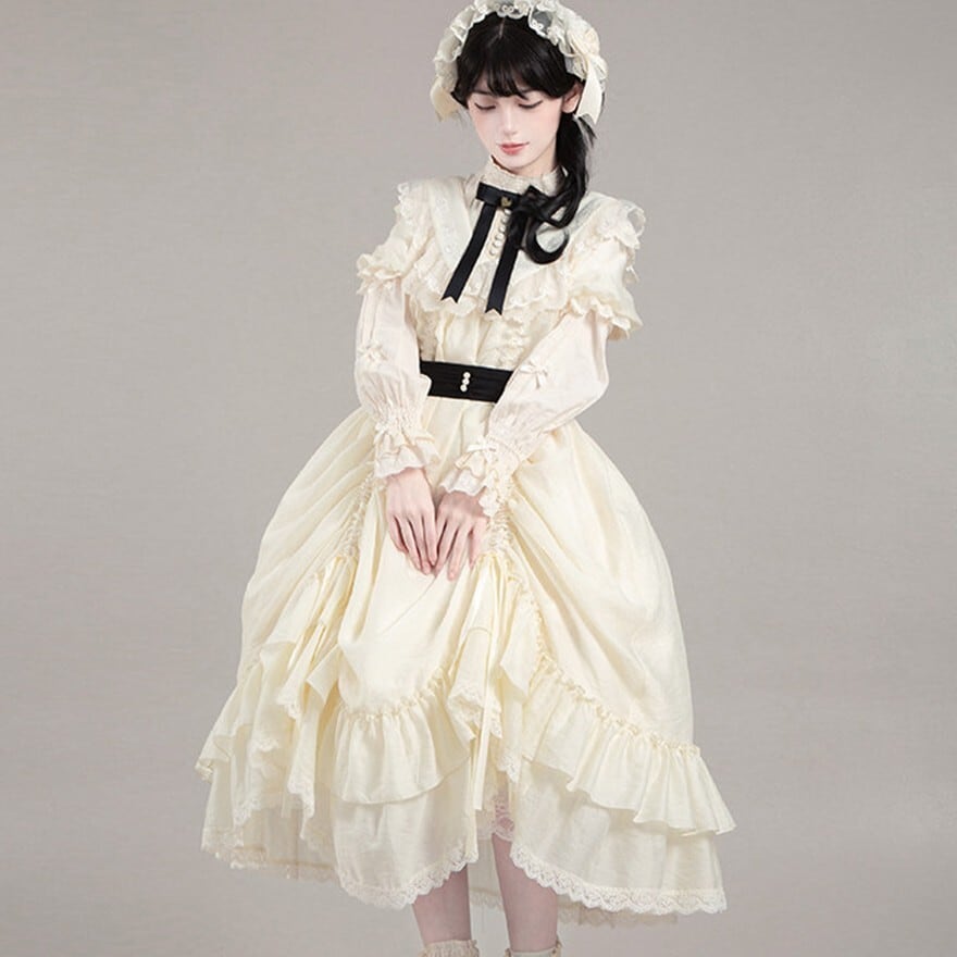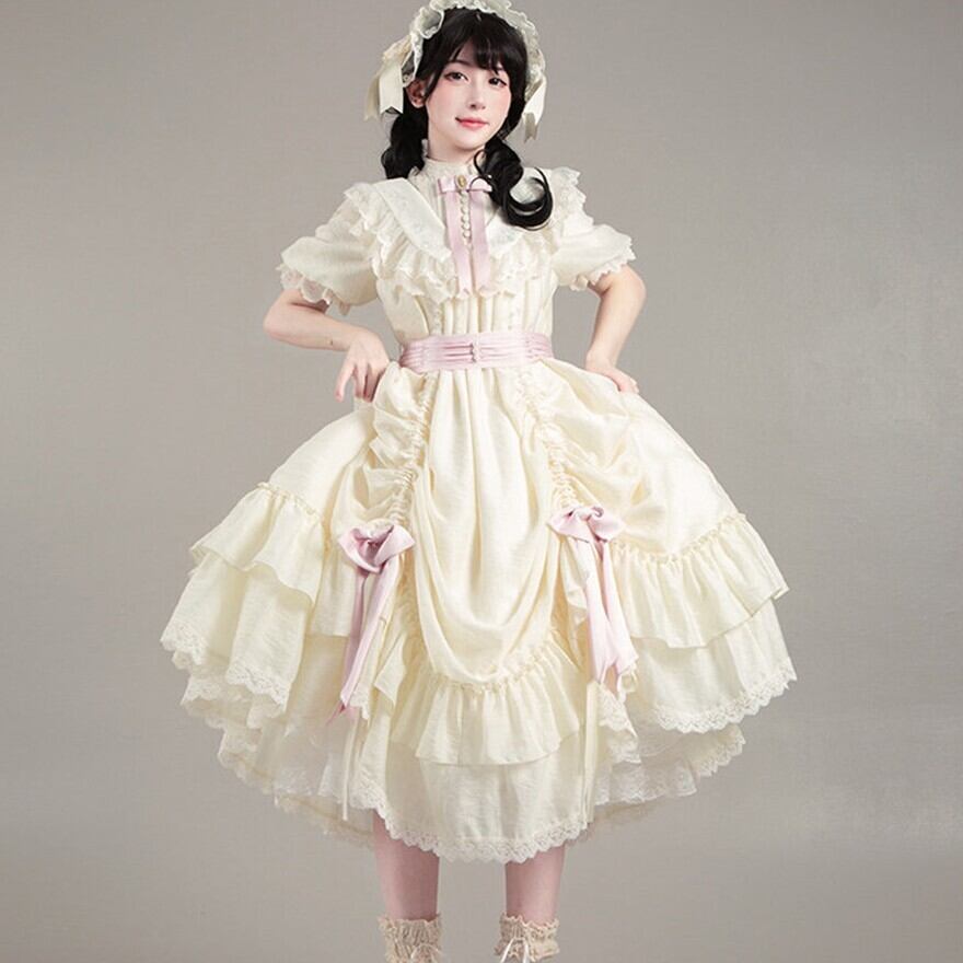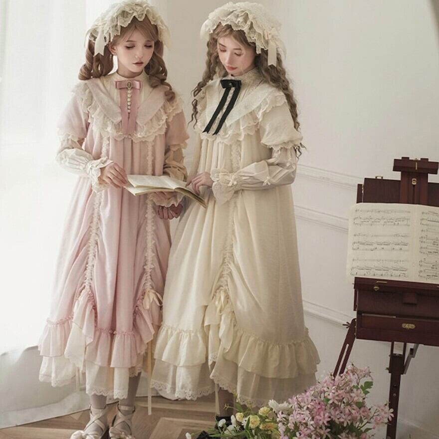 そんな不安を解消するため、淡色中心のやさしい配色と、衿付きのクラシカル寄りシルエットを採用。甘さを抑えつつもロリータらしさはしっかり感じられ、初心者から大人ロリータまで安心して着用できます。