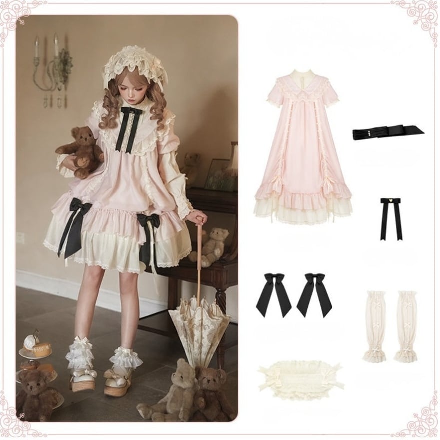 スウィートロリータ ワンピース(OP)+付け袖・小物付き 7点フルコーデセット