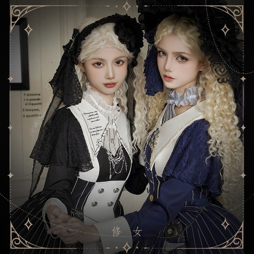- 十字架刺繍・ストライプ柄で聖堂や聖歌隊を思わせる世界観